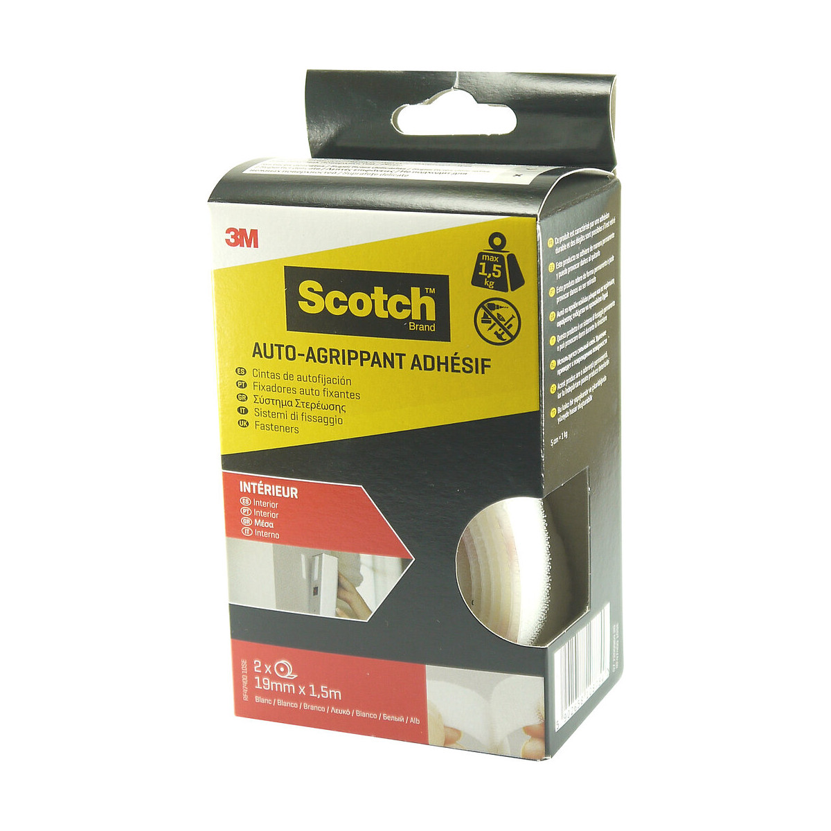 Rouleau Agrippant Adhésif INTERIEUR Blanc 1,5m x 19mm - Les auto-agrippant adhésifs de la gamme Scotch se déclinent en plusieurs formes et dimensions pour permettre une facilité au quotidien. Chaque produits sont pensés pour une utilisation précise. Du rouleau agrippant à la pastille, vous avez la possibilité de choisir le produit qui correspond à vos besoins. Simple d’utilisation, les clous, vis et autres matériaux ne sont pas nécessaire à la fixation. Les auto-agrippant de la gamme Scotch se fixent solidement et facilement sur différente surface (lisse, peinte, métal, plastique). La famille Intérieur des auto-agrippant est idéale pour la décoration et accrocher des éléments jusqu’à 1,5kg.Spécifications techniques