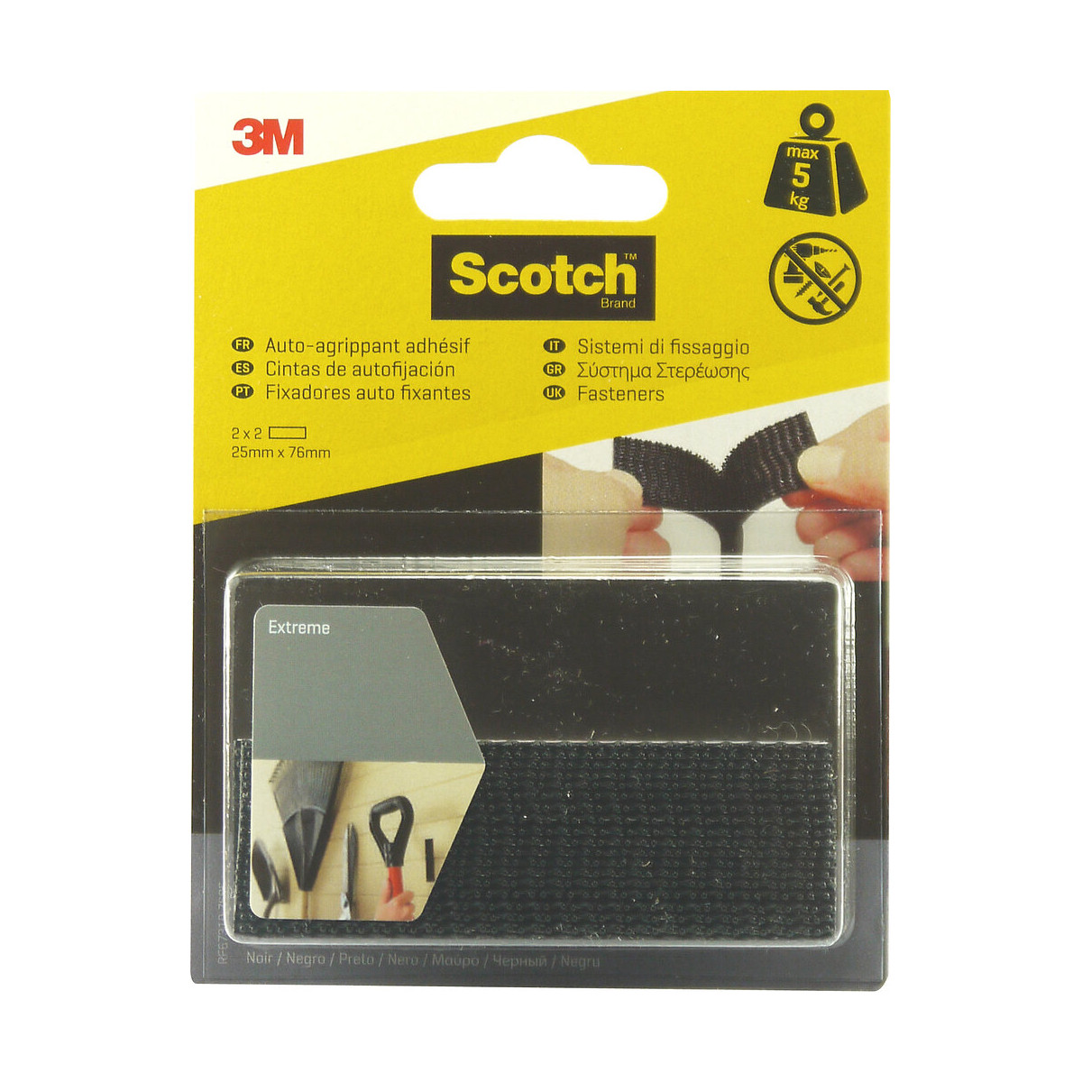 Bande Agrippante Adhésive extrême Noir 7,6cm x 25mm - Les auto-agrippant adhésifs de la gamme Scotch se déclinent en plusieurs formes et dimensions pour permettre une facilité au quotidien. Chaque produits sont pensés pour une utilisation précise. Du rouleau agrippant à la pastille, vous avez la possibilité de choisir le produit qui correspond à vos besoins. Simple d’utilisation, les clous, vis et autres matériaux ne sont pas nécessaire à la fixation. Les auto-agrippant de la gamme Scotch se fixent solidement et facilement sur différente surface (lisse, peinte, métal, béton). La famille Extrême des auto-agrippant est idéale pour accrocher des éléments jusqu’à 5kg.Spécifications techniques