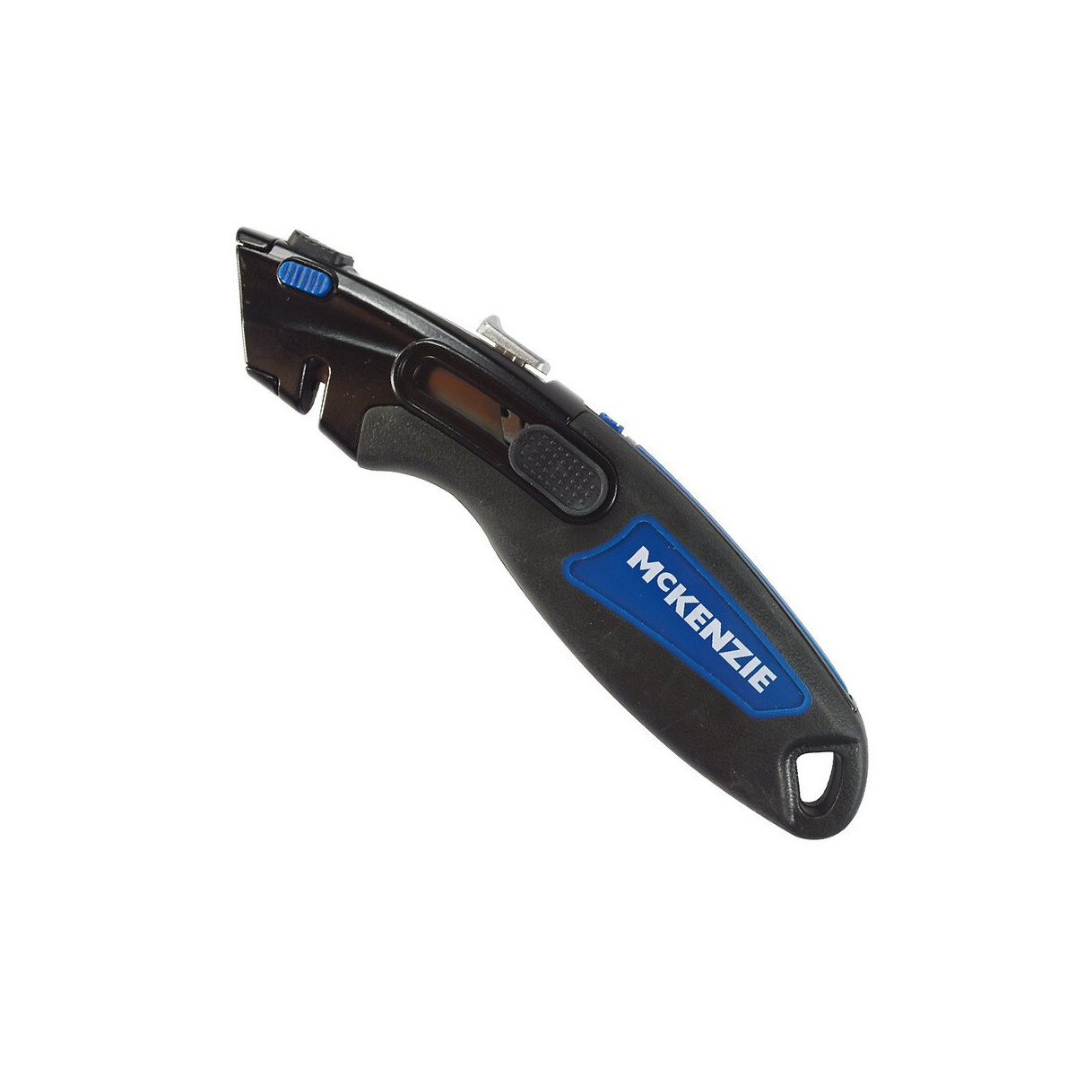 Cutter automatique retractable MC KENZIE - Idéal pour couper cartons & cordes. Emplacement pour stocker les lames. Lame rétractable automatiquement (possibilité de bloquer la lame). 3 lames incluses.