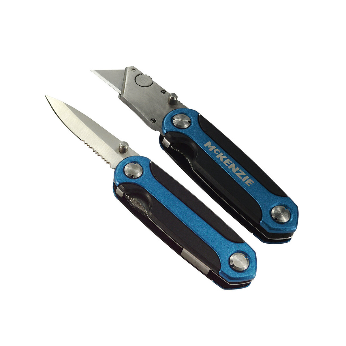 Accessoire polyvalent, ce couteau double lame sera très pratique grâce à sa double fonction de couteau et de cutter. Sa poignée solide en alliage d'aluminium offre une prise en main ferme et ergonomique pour un maniement sécurisé. Ce couteau permet d'effectuer des coupes en toute facilité grâce à la qualité de ses lames en acier inoxydable.