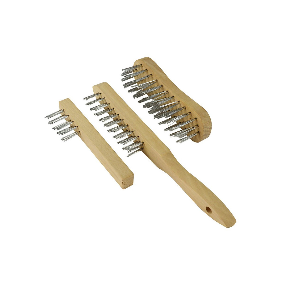 Ensemble de 3 brosses métal de différentes tailles : 26cm, 16,6cm et 17cm. Pour tous types de matériaux.