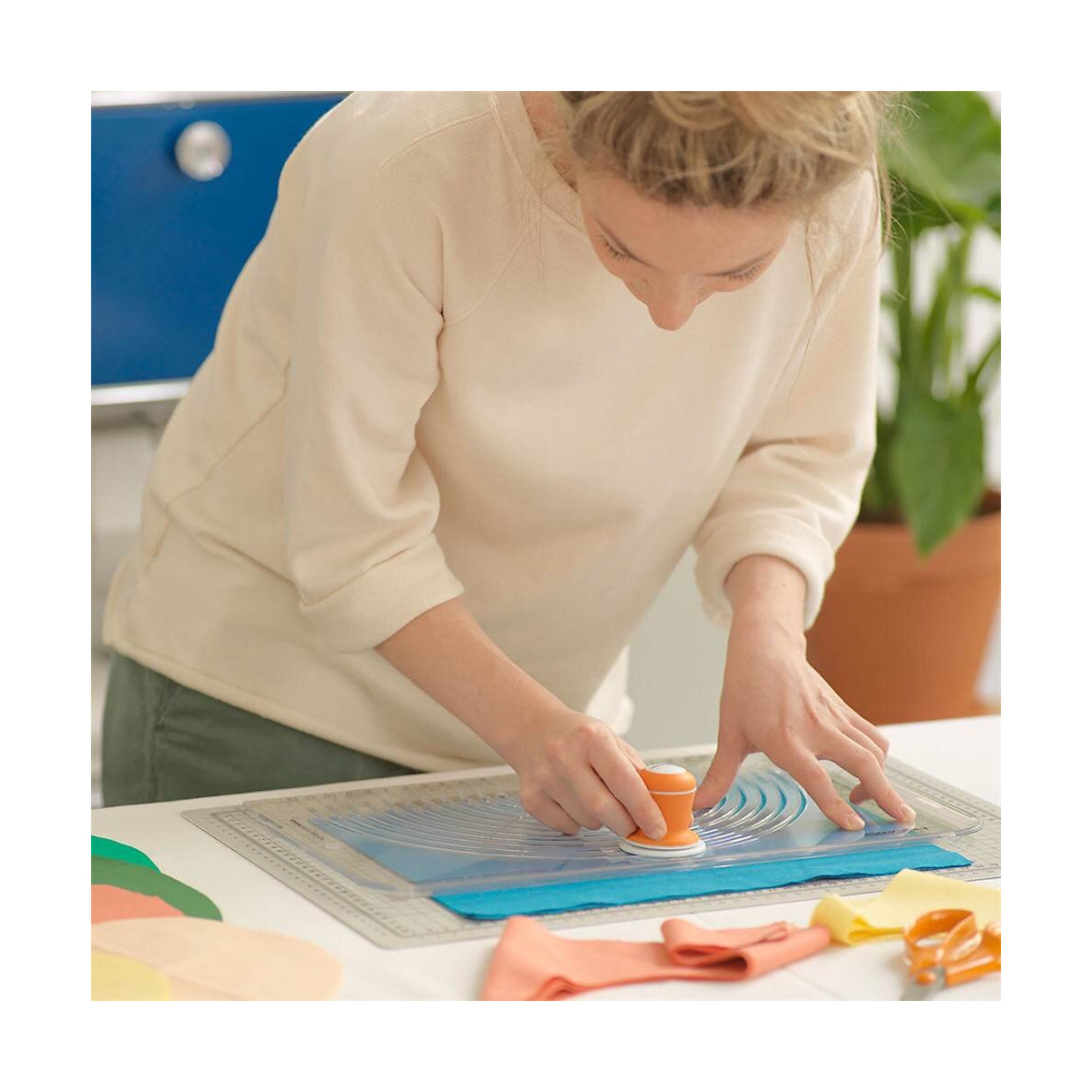 Idéal pour faire des cercles parfait de tissu en coton, polyester et bien d'autres11 tailles de diamètres allant de 2 à 12".Utilisez les guides de découpe pour réaliser des cercles parfaits, sans abîmer son tissuLa technologie Softgrip® aide à réduire l'effort pour un meilleur confort de prise en main.Utilisez la poignée pivotante pour des découpes fluides sans avoir à bouger le poignet.Spécifications techniques