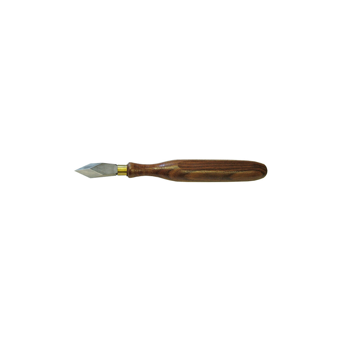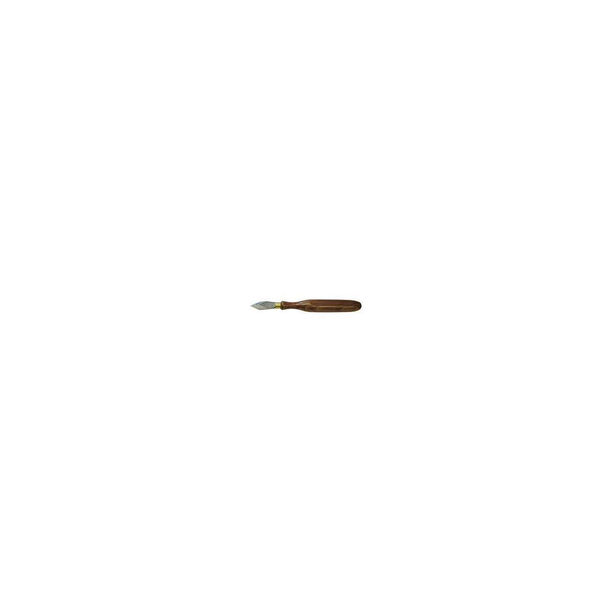 Manche en bois avec virole en laiton. Lame acier en forme de losange biseautée sur 2 faces. Pour les coupes à ras suivant une règle et tous travaux de précision en marqueterie. Longueur : 180 mmSpécifications techniques