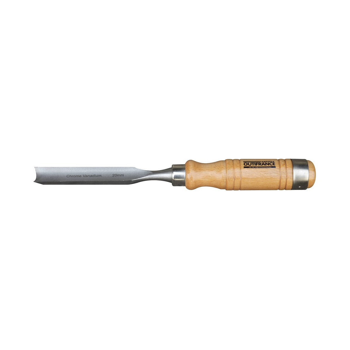 Gouge de menuisier avec lame creuse affûtée en acier haute dureté au chrome vanadium. Manche en bois renforcé par 2 viroles en acier. Largeur : 10 mm