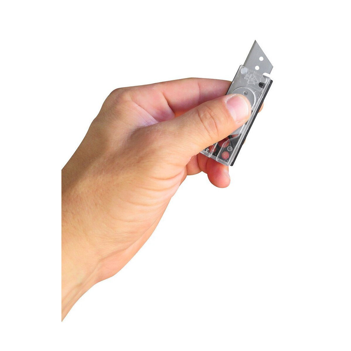 Distributeur de 5 lames 50x90x0,40mm. Dispose de trois encoches qui permettent d'ajuster la longueur de lame. Lames en acier au carbone à affûtage double biseau. Grande résistance. Idéale pour les matériaux abrasifs. Fabrication Allemande