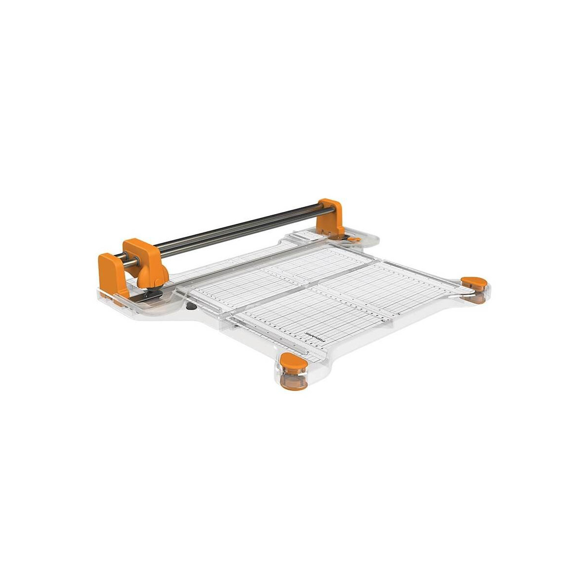 Système de double rail pour une meilleure stabilité et une découpe droite et ultra précise à chaque utilisation.Coupe les matériaux épais (plusieurs couches de papier épais ou cartonnette).La lame rotative auto-affûtante ne s'use pas et n'a pas besoin d'être changée.Se plie pour un transport et un rangement facilités.Capacité de coupe : 3 mm