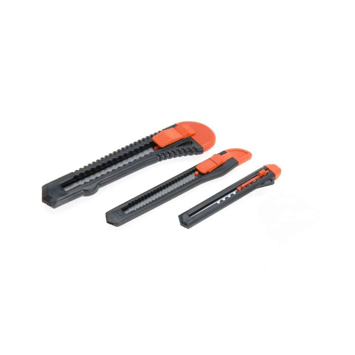 Description détaillée du produit Produit: Lot de 3 cutters Dimensions: 110 x 20 mm, 90 x 15 mm, 70 x 10 mm Coloris: noir et orange Marque: Fx Tools