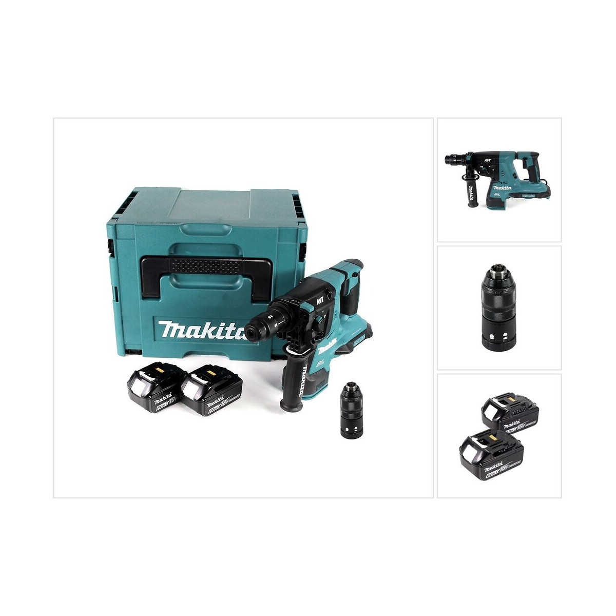 Contenu du paquet: - 1x Makita DHR 281 ZJ Perfo-burineur sans fil - 1x Coffret de transport Makpac - 1x Guide de profondeur - 1x Graisse pour emmanchement 100ml - 1x Mandrin auto-serrant interchangeable 1,5mm - 13mm - 1x Chiffon Makita - 2x Batteries Makita BL 1860 B Li-Ion 18 V - 6,0 Ah / 6000 mAh avec affichage LED ( 197422-4 ) - Sans chargeur Description du produit: Le perfo-burineur sans fil DHR 281 ZJ de Makita est alimenté par deux batteries Makita de 18 volts pour répondre aux exigences les plus élevées. Cet appareil est équipé d'un moteur sans balai(Brushless), ce qui a un effet positif sur la durée de vie et l'endurance de ce dernier. Un limiteur de couple à friction protège l'utilisateur en cas de blocage du perfo-burineur pendant le travail. De plus, Makita a intégré sa technologie Xtreme Protect, ce qui assure une protection optimale contre la poussière et les projections d'eau; Ceci rend cet appareil extrêmement résistant et durable. La technologie antivibratoire de cet appareil offre un haut niveau de confort et combat la fatigue causée par les vibrations. De plus, ce perfo-burineur de Makita est équipé d'une LED puissante qui éclaire la zone de travail de manière optimale et d'un affichage d'avertissement de faible capacité de la batterie. Cet appareil est livré avec un mandrin auto-serrant interchangeable confortable. Spécifications techniques: Tension de la batterie : 2x 18V Vitesse à vide max. : 0 - 980 tr/min Cadence de frappe max. : 0 - 5.000 cps/min Puissance de frappe (EPTA) : 2,8 J Ø max. de perçage dans le bois : 32 mm Ø max. de perçage dans l'acier : 13 mm Ø max. de perçage dans le béton : 28 mm Ø max. de perçage avec trépan : 68 mm Convient pour type d'emmanchement : SDS-PLUS Dimensions (L x l x H) en mm : 373 x 134 x 232 Poids : 4,9 kg Pression sonore (LpA) : 92 dB (A) Puissance sonore (Lwa) : 103 dB (A)