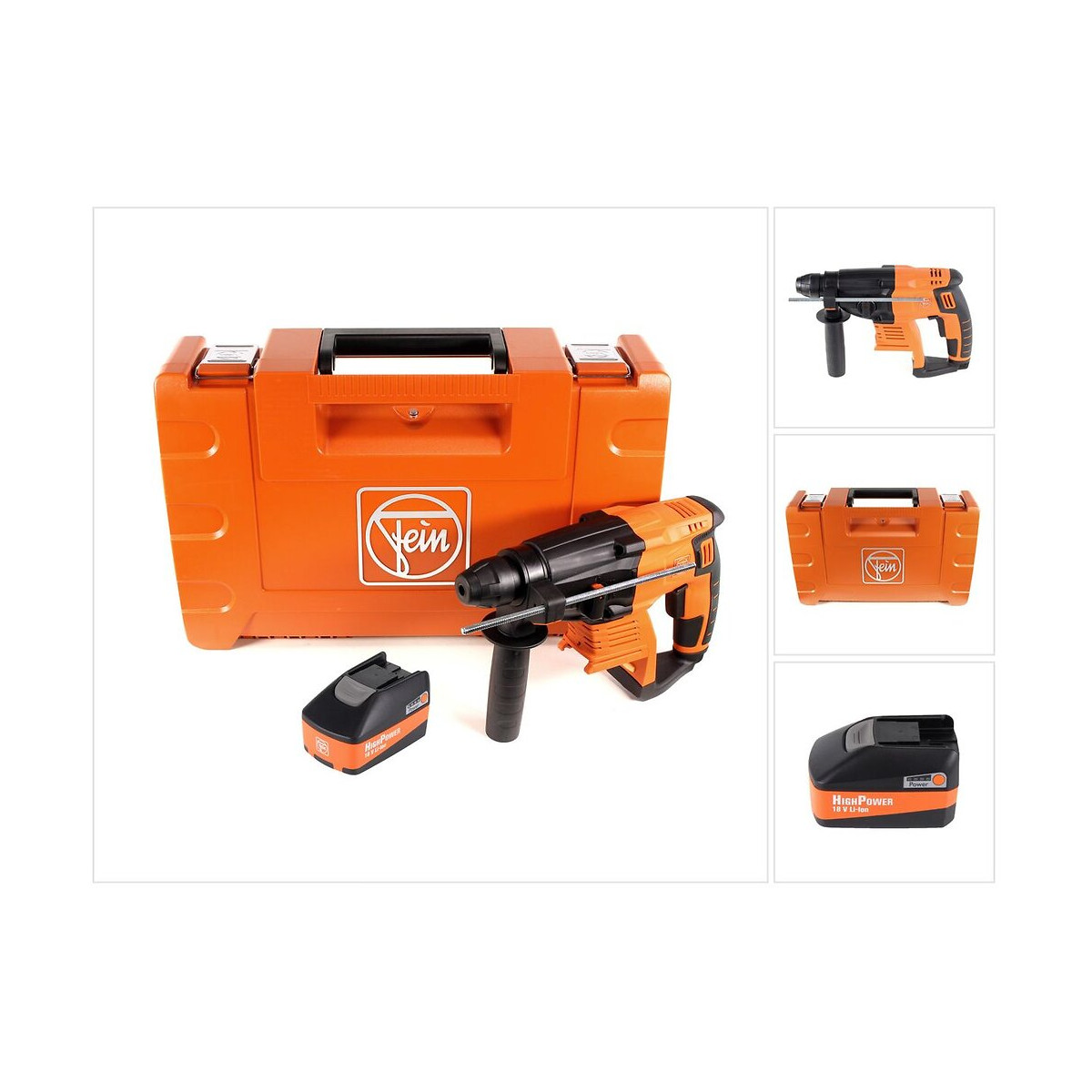 Contenu de la livraison: - 1x FEIN ABH 18 Perforateur-burineur sans fil 2.0J 18V SDS-plus Brushless (71400164000) - 1x Batterie FEIN HighPower 5.2 Ah (92604179020) - 1x Boîte à outils en plastique FEIN - 1x Poignée à main - 1x Butée de profondeur - Sans chargeur Description du produit: L'ABH 18 de FEIN est un marteau perforateur sans fil extrêmement compact et puissant avec une énergie d'impact de 2 J pour le perçage dans le béton jusqu'à 20 mm. La machine convainc par une progression de travail élevée grâce au moteur sans balais avec une énergie d'impact élevée et un travail sans fatigue grâce à sa conception compacte et ses faibles vibrations. De plus, l'utilisateur et la machine sont protégés par un couplage de sécurité et une protection contre les surcharges. Le marteau combiné de FEIN est livré avec trois fonctions: le forage au marteau, le perçage et le burinage et est extrêmement faible en vibration avec seulement 12 m / s². La technologie FEIN SafetyCell protège la batterie et la machine contre les surcharges, les surchauffes et les décharges profondes. Spécifications techniques: Marteau perforateur sans fil FEIN ABH 18 Tension des piles: 18 V. Énergie d'impact: 2,0 J Porte-outil: SDS-plus Moteur: sans balais Régime de ralenti: 0-1200 tr/min Nombre de coups: 0-4400 cps/min Poids sans batterie: 2,30 kg Perçage Ø acier: 13 mm Foret Ø béton: 20 mm Foret Ø bois: 22 mm Foret Ø maçonnerie: 68 mm Niveau de pression acoustique: 88,4 dB (A) Niveau de puissance acoustique: 99,4 dB (A) Incertitude (K): 3 dB Batterie FEIN HighPower 18 V 5,2 Ah Li-Ion Capacité: 5,2 Ah Dimensions (longueur x largeur x hauteur): 0,09 m x 0,065 m x 0,045 m Tension: 18 V