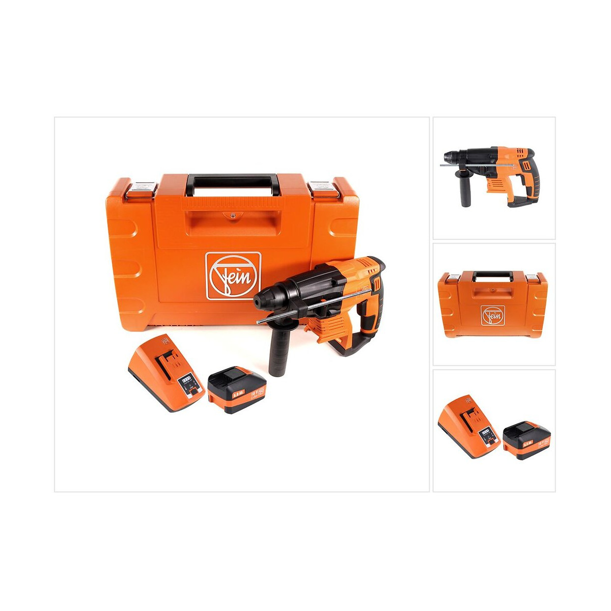 Contenu de la livraison: - 1x FEIN ABH 18 Perforateur-burineur sans fil 2.0J 18V SDS-plus Brushless (71400164000) - 1x Batterie FEIN 6.0 Ah (92604175020) - 1x Chargeur rapide FEIN ALG 80 (92604180010) - 1x Boîte à outils en plastique FEIN - 1x Poignée à main - 1x Butée de profondeur Description du produit: L'ABH 18 de FEIN est un marteau perforateur sans fil extrêmement compact et puissant avec une énergie d'impact de 2 J pour le perçage dans le béton jusqu'à 20 mm. La machine convainc par une progression de travail élevée grâce au moteur sans balais avec une énergie d'impact élevée et un travail sans fatigue grâce à sa conception compacte et ses faibles vibrations. De plus, l'utilisateur et la machine sont protégés par un couplage de sécurité et une protection contre les surcharges. Le marteau combiné de FEIN est livré avec trois fonctions: le forage au marteau, le perçage et le burinage et est extrêmement faible en vibration avec seulement 12 m / s². La technologie FEIN SafetyCell protège la batterie et la machine contre les surcharges, les surchauffes et les décharges profondes. Spécifications techniques: Marteau perforateur sans fil FEIN ABH 18 Tension des piles: 18 V Énergie d'impact: 2,0 J Porte-outil: SDS-plus Moteur: sans balais Régime de ralenti: 0-1200 tr/min Nombre de coups: 0-4400 cps/min Poids sans batterie: 2,30 kg Perçage Ø acier: 13 mm Foret Ø béton: 20 mm Foret Ø bois: 22 mm Foret Ø maçonnerie: 68 mm Niveau de pression acoustique: 88,4 dB (A) Niveau de puissance acoustique: 99,4 dB (A) Incertitude (K): 3 dB Batterie FEIN 18V 6.0 Ah Li-Ion Tension: 18 V Capacité: 6 Ah Type de cellule: lithium-ion Chargeur rapide FEIN ALG 80 Tension de charge de la batterie: jusqu'à 18 V Courant de charge: 8 ampères Interface USB Affichage LED Poids: 680 g