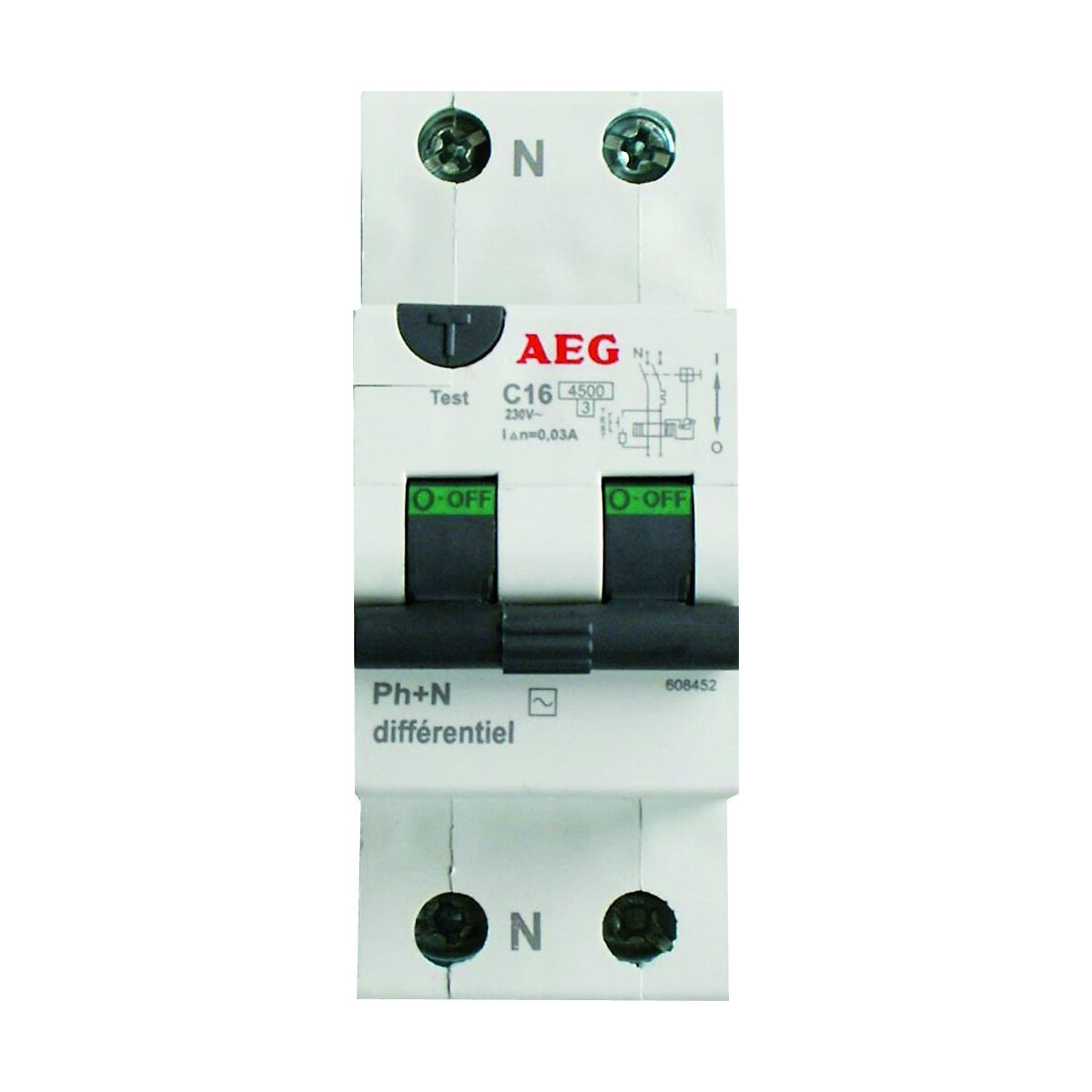 AEG une stratégie sur le marché Il combine les fonctions d?un Interrupteur différentiel et d?un disjoncteur phase-neutre Protège votre circuit et évite les risques d?électrocutions. 1 Disjoncteur Différentiel 16A 30mA Type AC Garantie : 2
