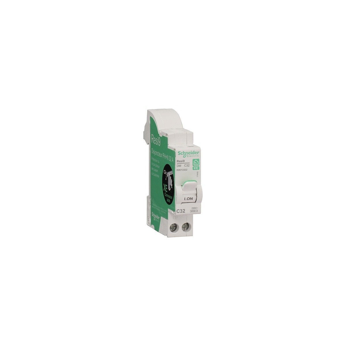 Disjoncteur embrochable 2A Schneider Electric. À utiliser avec un répartiteur Schneider Electric technologie embrochable. Une sécurité absolue car il n'y a pas besoin de visser le disjoncteur. Aucun contact avec l'électricité il suffit de clipser le disjoncteur. Caractéristiques : Resi9 XE, Disjoncteur embrochable, 1P + N, 32A, Courbe C, Largeur : 2 pas de 9 mm, blanc RAL 9003, CE, NF, Icn 3000 A à 230 V CA 50 Hz selon EN/IEC 60898-1, Classe de limitation : 3 selon EN/IEC 60898-2