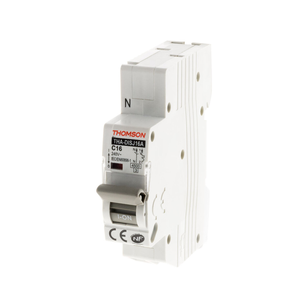 Disjoncteur unipolaire de 16A PH+N. Ce disjoncteur s'installe sur le tableau électrique par connexion automatique pour protéger les appareils électriques de la surchauffe, des courts-circuits et de la surcharge. Caractéristiques: Pouvoir de coupure de 4.5KA. Conforme à la norme NF EN 60898-1 Garantie 2 ans
