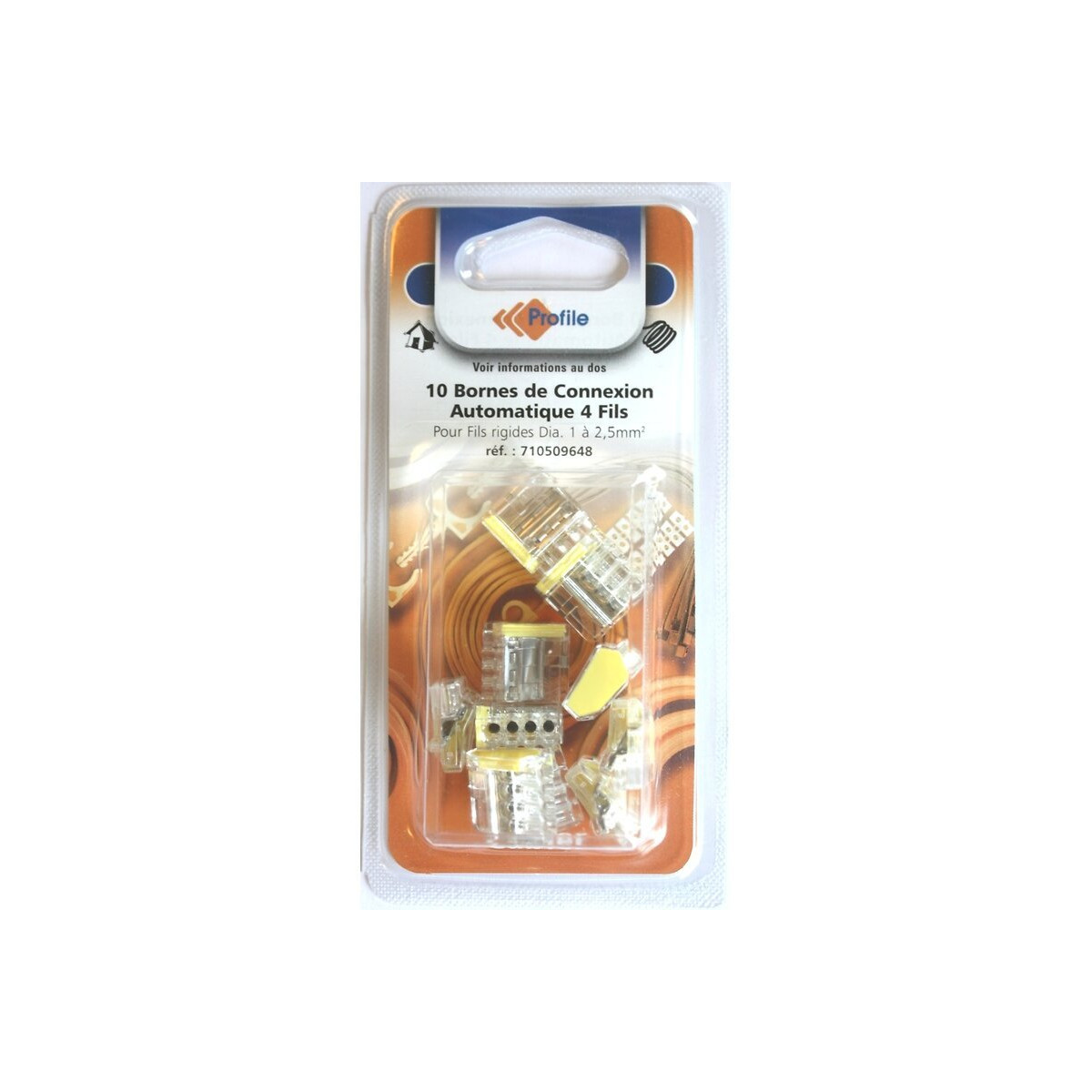 Lot de 10 Bornes Transparents 4 fils. Marque : Profile. Borne avec connexions automatiques. Pour 4 Fils souples ou rigides.