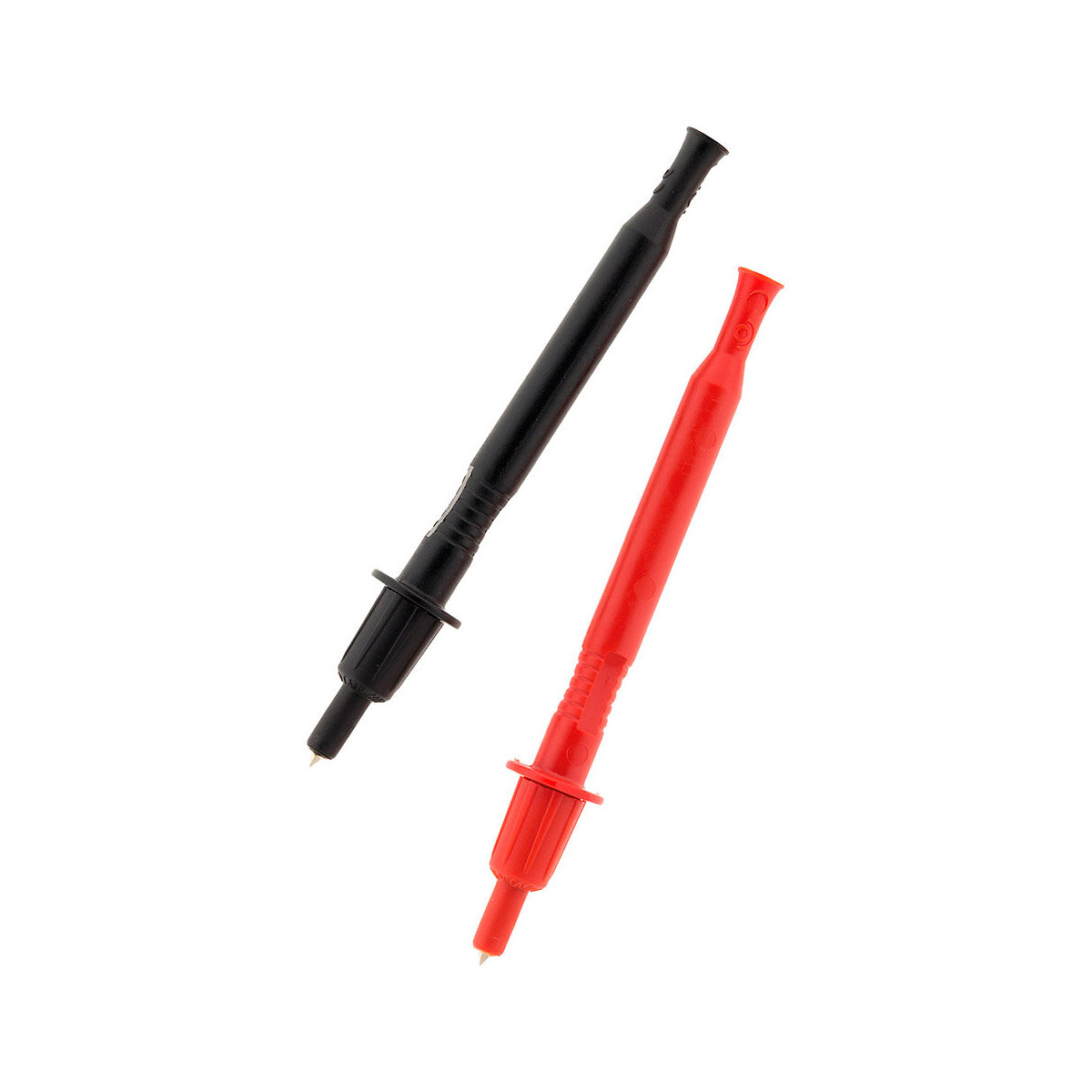 Lot de 2 pointes de touche à ressort universelles pour équiper un multimètre: 1 rouge + 1 noire. Diamètre 4mm. Intensité admissible 36A. Tension de service 1000V.