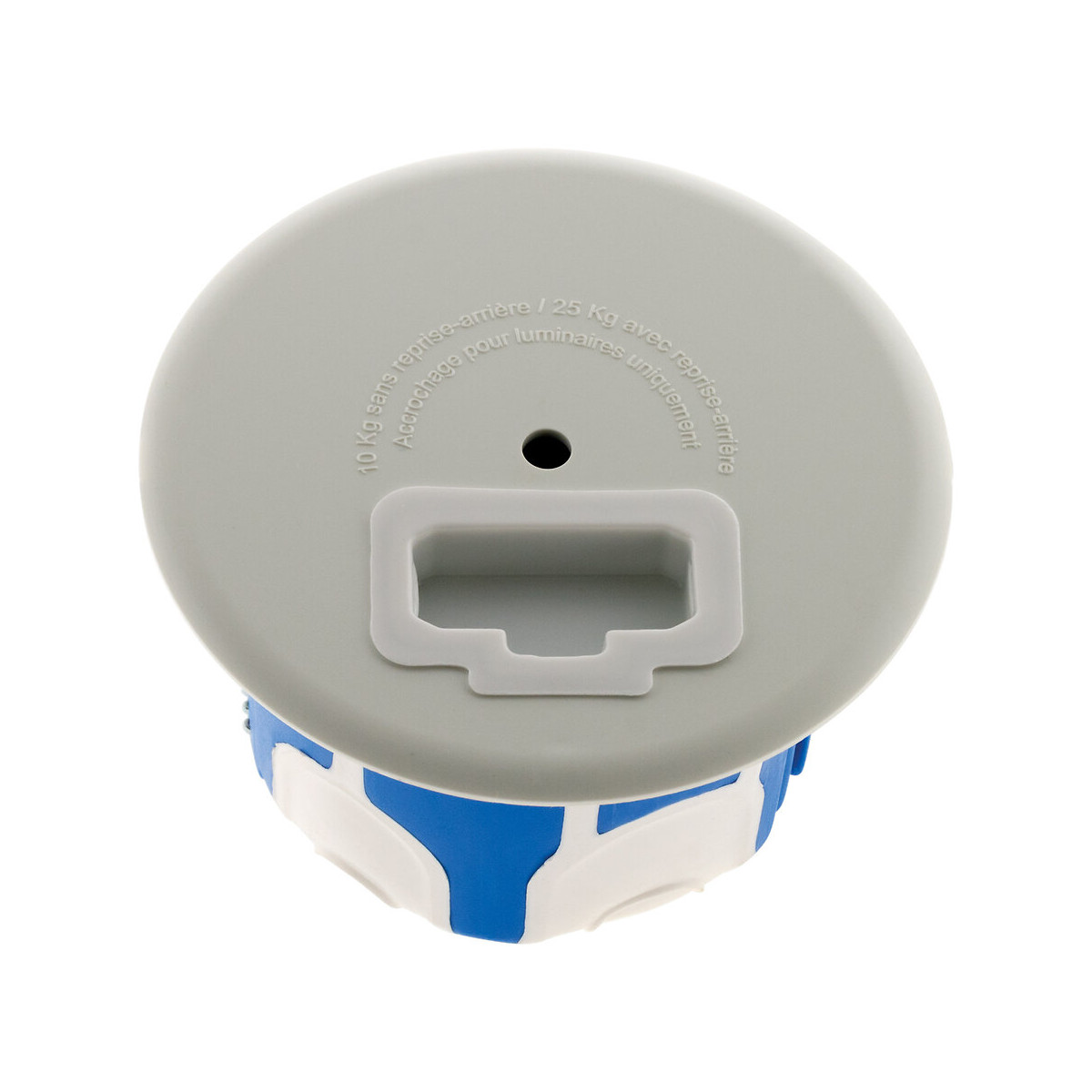 Boite DCL point de centre No-air - multimatériaux. S'installe sur murs creux et est étanche à l'air. Boite spécial BBC et conforme à la réglementation thermique 2012 (RT 2012). Livré avec crochet de suspension. Normes NF.