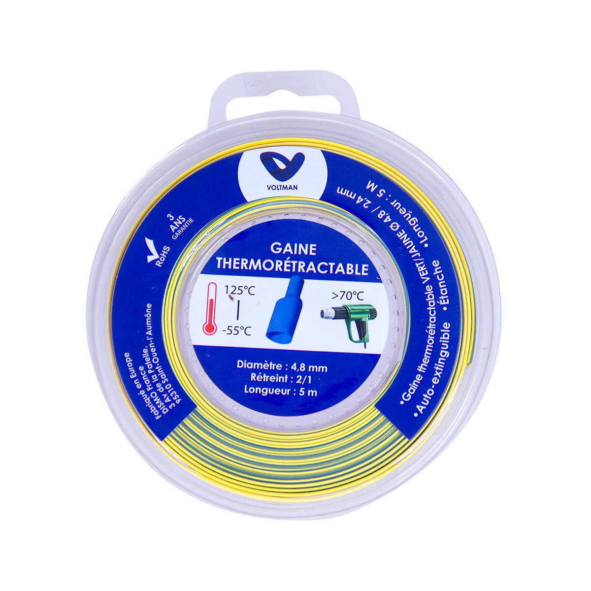 Gaine Thermoratractable Ø 4,8/2,4mm X 5 Mètres, Auto-extinguible, Vert/jaune, Étanche, Température D'utilisation -55 /+ 125