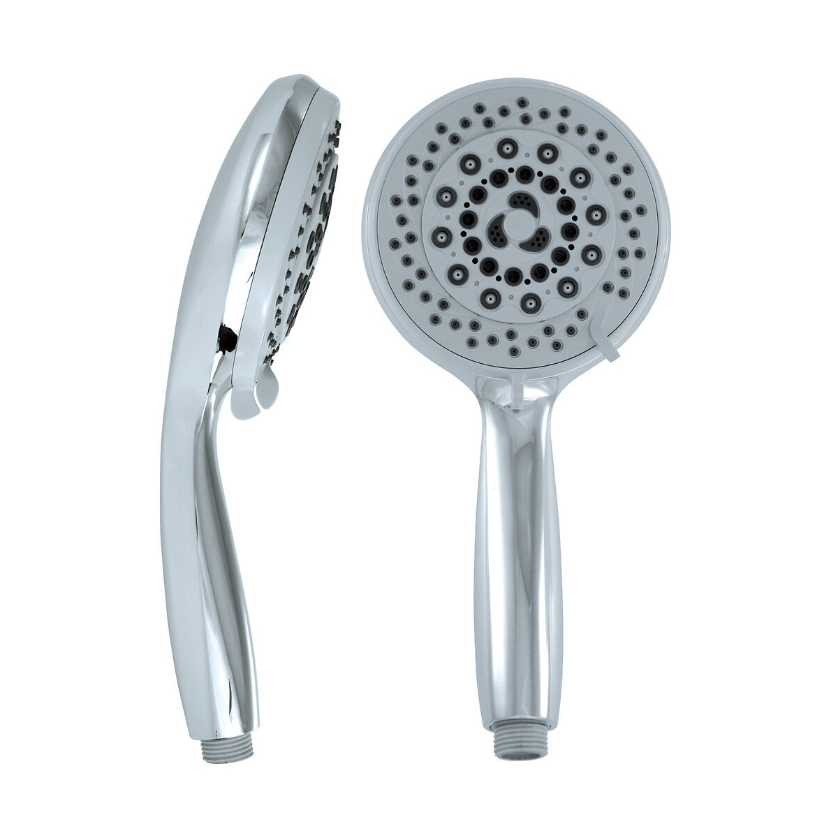 - diamètre : 120 mm - nombre de jets : 6 (pluie, massage, brumisation, pluie allégée, pluie+massage, pluie+brumisation) - anti-calcaire : picots souples - matière : ABS chromé - économie d?eau : - position stop?o incluse sur le 1er curseur - le 2ème curseur permet de régler de 100 % à 50 % le débit du jet choisi avec le 1er curseur - raccordement : M.1/2 (15x21) standardSpécifications techniques