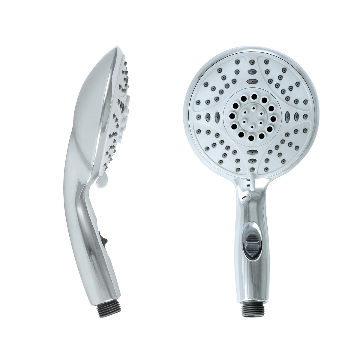 - diamètre : 120 mm - nombre de jets : 5 (pluie, massage,tonique, pluie + massage,pluie + tonique) - anti-calcaire : picots souples - matière : ABS - économie d?eau : bouton stop?o + joint réducteur de débit - raccordement : M.1/2 (15x21) standardSpécifications techniques