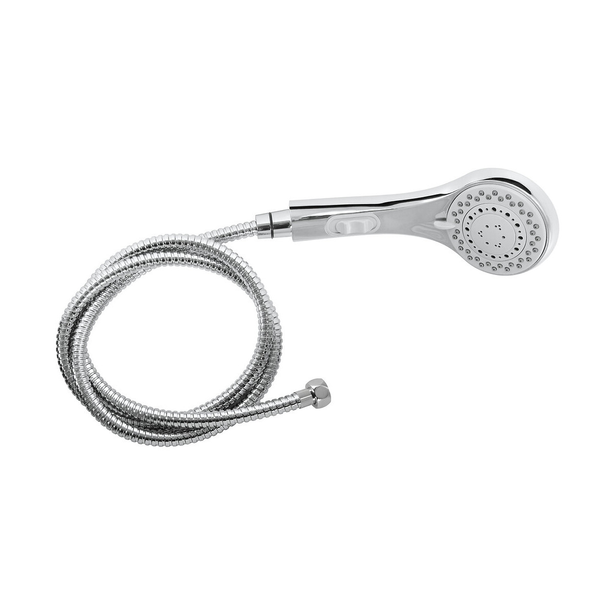 * Douchette : - diamètre : 100 mm - nombre de jets : 3 (pluie, massage,tonique) - matière : ABS chromé - anti-calcaire : picots souples - économie d?eau : bouton stop?o + réducteur de débit intégré dans le manche * Flexible : - matière : inox chromé double agrafage - longueur : 1,50 m - raccordement : écrous métal F1/2 (15x21) - résistance à la traction : 40 kg * Support : - mural fixe 2 positions - matière : ABS chroméSpécifications techniques