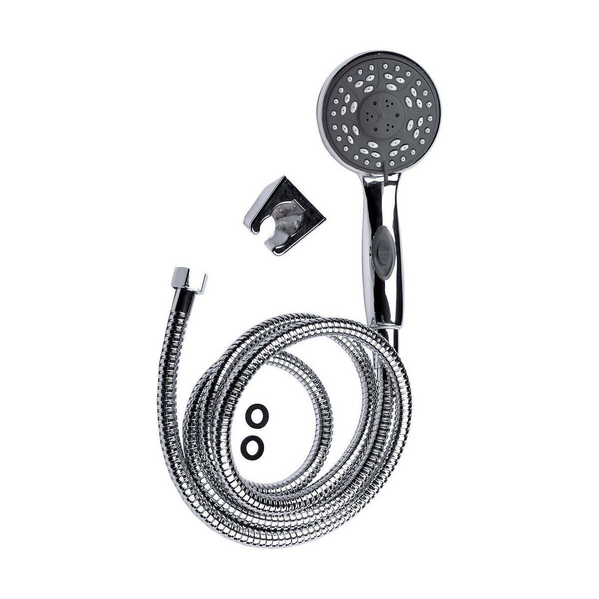 Kit douchette support 3 jets chrome -ABS - 3 jets (Pluie, massage, tonique avec goutte d’eau) - ø100MM, corps chromé, plaque gris foncé et caoutchouc blanc