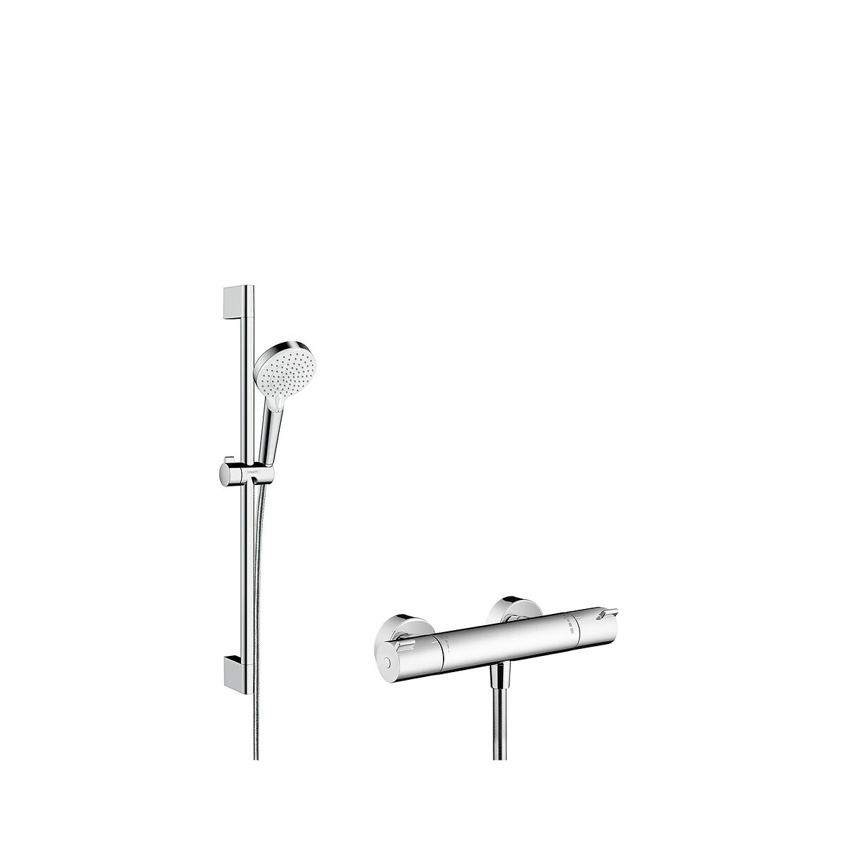 Mitigeur thermostatique ultra-précis : température stable au degré près, 1 butée de confort à 40°. Douchette 2 jets avec large pommeau de 10cm de diamètre. Changez de jet en tournant l'extrémité de la douchette. Flexible de douche 1m60 en PVC renforcé et avec écrous tournants qui évitent la torsion du flexible. Barre de douche robuste de 65cm de hauteur et de 2,2cm de diamètre avec curseur de douchette ajustable en hauteur et en inclinaison. Picots anticalcaires : le calcaire s'élimine d'un simple passage du doigt pour des jets irréprochables et pour longtemps. Compatible avec tous types de production d'eau chaude. Installation facile. Garantie totale de 5 ans par le fabricant.