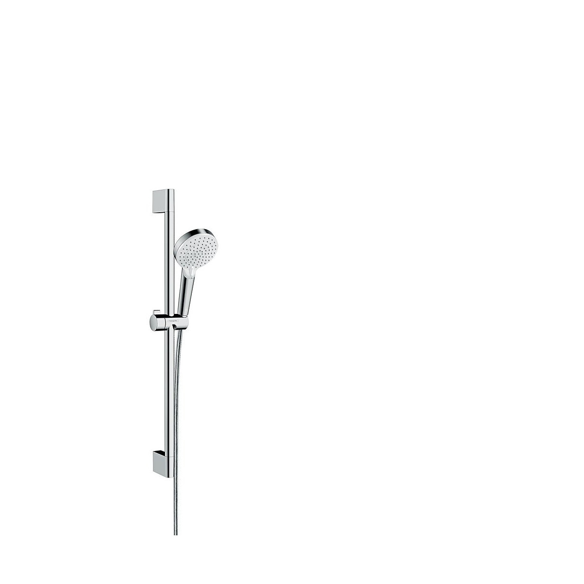 Barre de douche en laiton chromé robuste de 65cm de hauteur et de 2,2cm de diamètre, avec curseur de douchette. Douchette à 2 jets et large pommeau de 10cm de diamètre : répartition homogène de l'eau pour un jet enveloppant et généreux. Design élégant : alliance du blanc sur la zone de jet et du chrome sur le reste de la surface du pommeau. Flexible de douche de 1m60 avec écrou tournant qui évite de l'entortiller. Picots anticalcaires : le calcaire s'élimine d'un simple passage du doigt pour des jets irréprochables et pour longtemps. Universelle : compatible tout système de production d'eau chaude. Installation facile. Garantie totale 5 ans.Spécifications techniques
