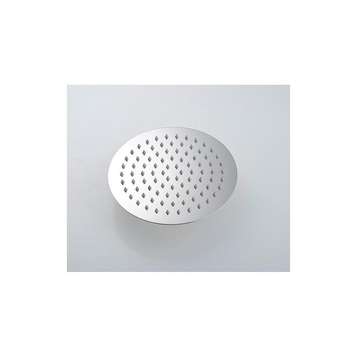 Pomme de douche calcaire ronde ultrafine"Pomme de douche à disque ultra fin".Pomme de douche ronde en acier inoxydable chromé ultra-mince, élégante et essentielle, d'un diamètre de 20 cm. Profitez de votre douche avec cette pomme de douche. Il dispose d'un raccord 1/2" qui permet de l'installer dans n'importe quelle douche et il est également anticalcaire. Il possède en effet des tétines en silicone qui le rendent facile à nettoyer du calcaire et prolongent donc sa durée dans le temps.