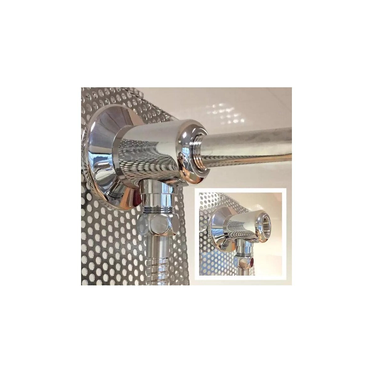 Inverseur de pression Foxy tout en laiton chromé évasé, avec rosace et Mamelon égal laiton MÂLE-MÂLE à visser 1 / 2x1 / 2, connexion standard 1/2. COMMENT CELA FONCTIONNE-T-IL? Avoir une seule sortie d'eau en haut, en interposant le déviateur