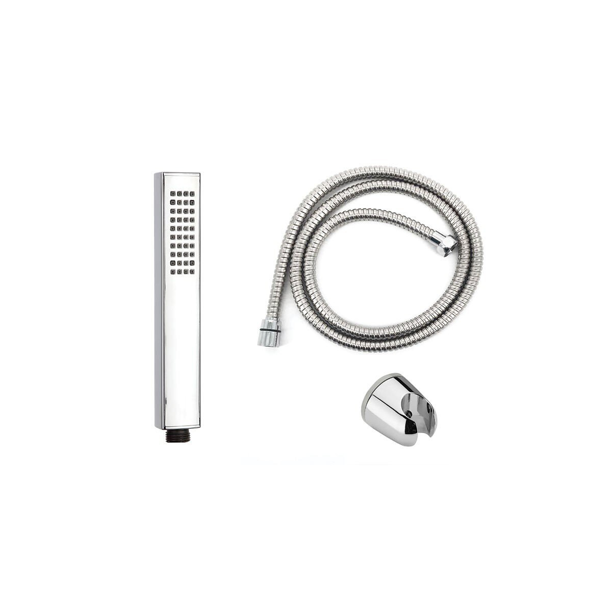 Ensemble de douche composé de: - douchette carré - tuyau de douche cm 150 - support de douche chromé