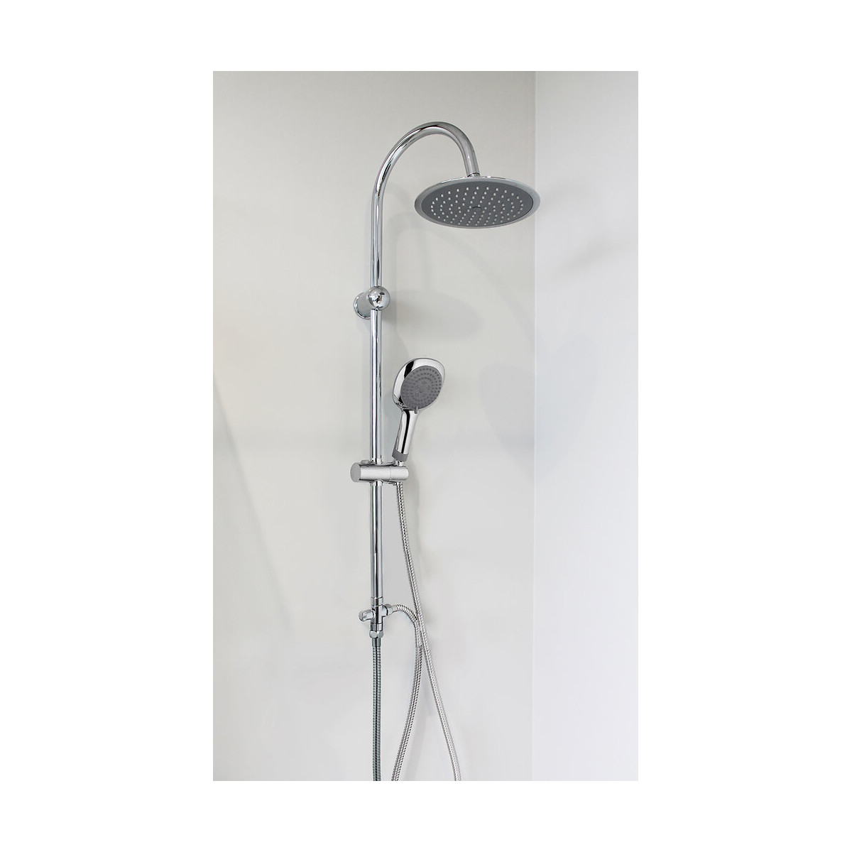 L'ensemble de douche ZEKI, c'est le choix de l'élégance et de la fonctionnalité pour votre douche. Il se compose d'une douche de tête sur col de cygne et d'une douchette proposant 2 jets différents. La douche de tête large et extra-plate (diamètre 20cm) est orientable avec un jet pluie durable grâce à ses picots anticalcaire. La douchette à main à 2 jets est également munie de picots anticalcaire. Elle est associée à un support ajustable en hauteur et un flexible chromé à double agrafage (longueur 150cm) complète l'ensemble. Ce produit de la collection Zen à Vivre vous assure un confort sans égal et vous permet profiter de votre intérieur en toute serenité.