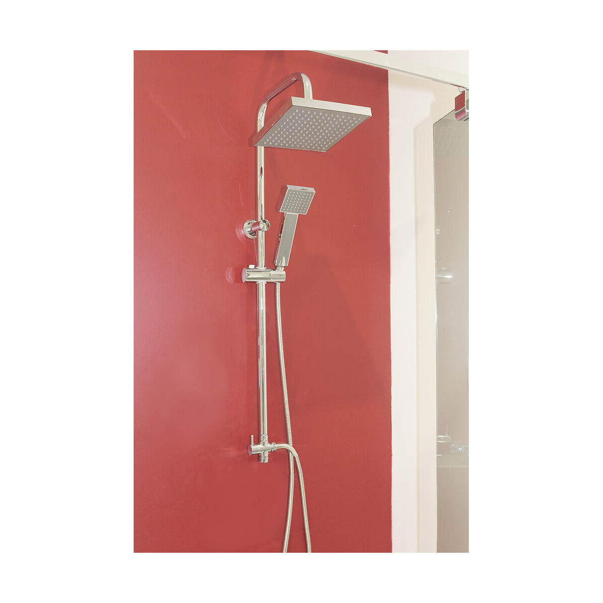 L'ensemble de douche CELO, c'est le choix de l'élégance et de la fonctionnalité pour votre douche. Il se compose d'une douche de tête carrée sur col de cygne et d'une douchette carrée multifonction. La douche de tête large et extra-plate (20x20cm) est orientable avec un jet pluie durable grâce à ses picots anticalcaire. La douchette à main à multifonction est également munie de picots anticalcaire. Elle est associée à un support ajustable en hauteur et un flexible chromé à double agrafage (longueur 150cm) complète l'ensemble. Fourni : 2nd flexible de raccordement 70cm Ce produit de la collection Zen à Vivre vous assure un confort sans égal et vous permet profiter de votre intérieur en toute serenité.