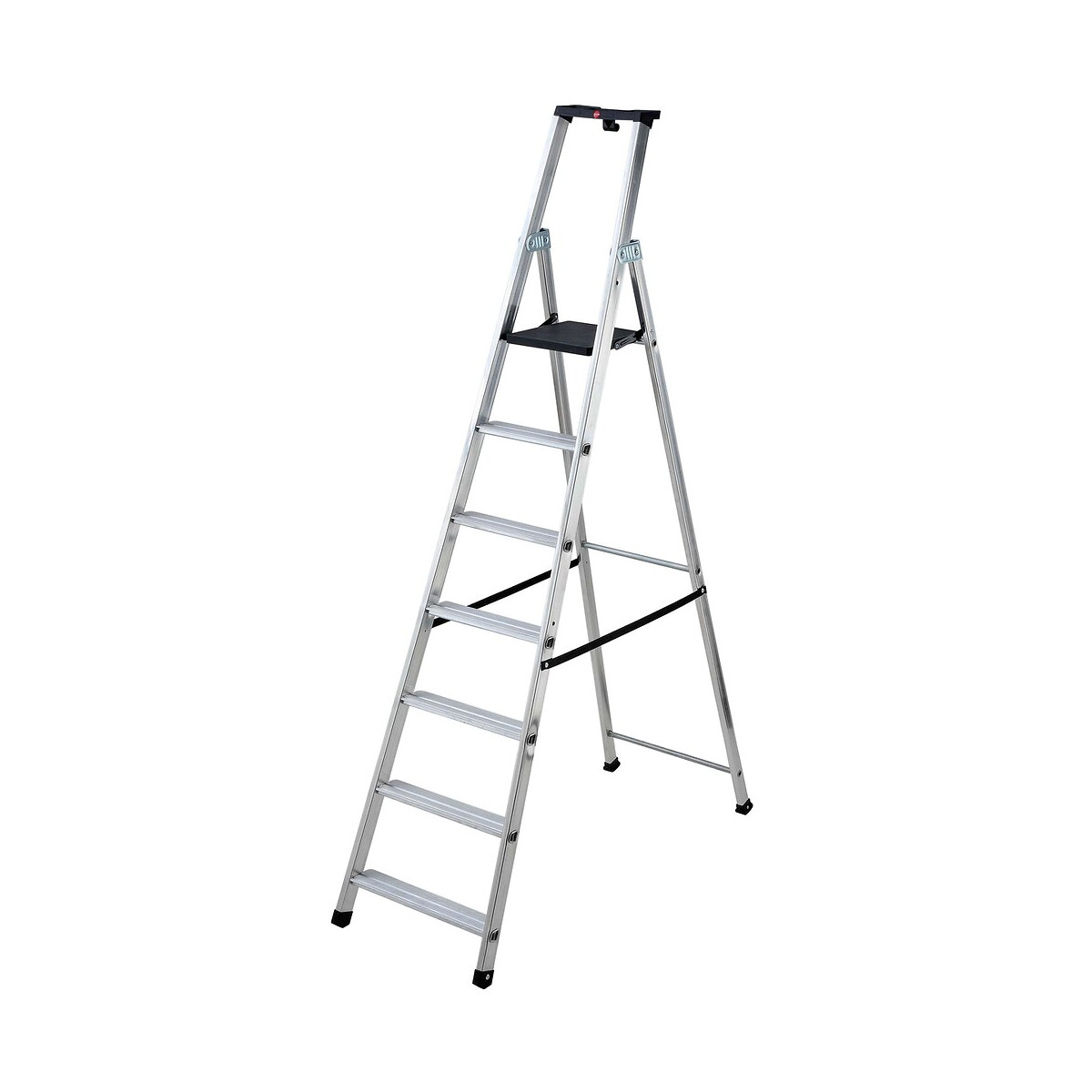 Escabeau pro alu 7 marches antidérapantes plateforme fonte d'aluminium, tablette porte outil charge maxi de 150 kg, hauteur de travail 3,39 m.Spécifications techniques