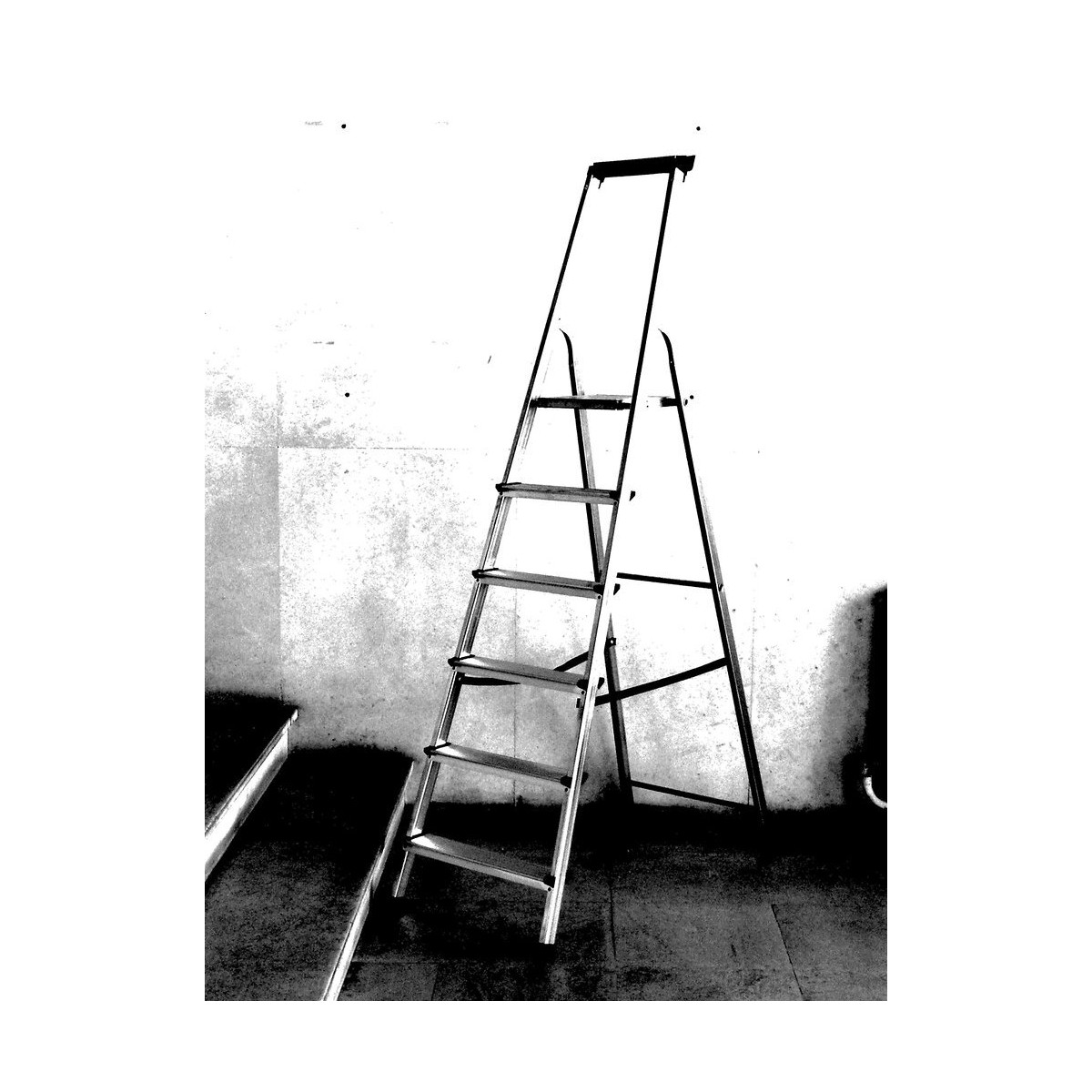 Escabeau sécurisé en aluminium 6 marches. Garde-corps noir en plastique haute qualité et crochet porte seau intégrELiaison des marches et des montants à rivetage haute technologie.Spécifications techniques