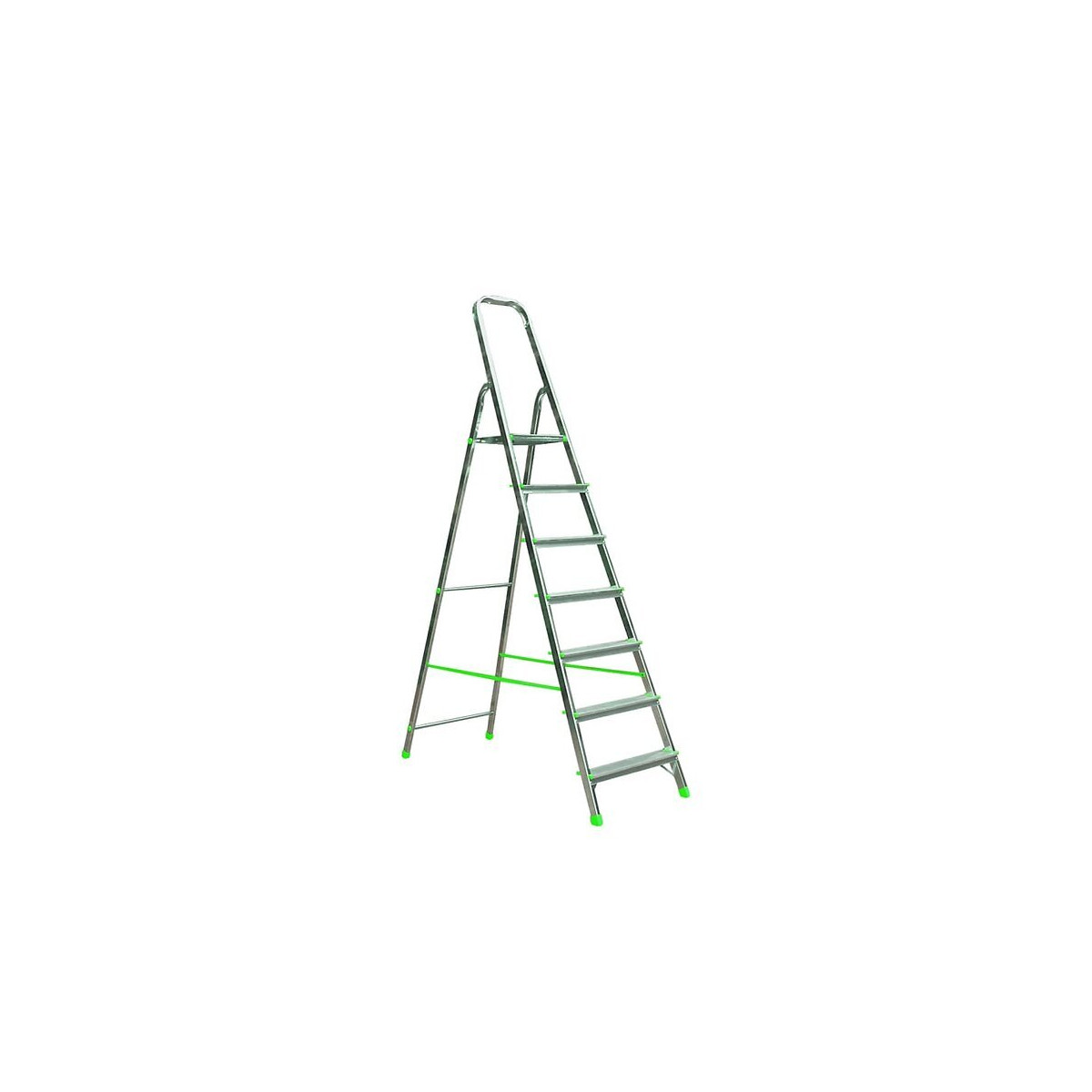 Escabeau ménager tout aluminium, léger et facile à déplacer. Escabeau à faible encombrement idéal pour un usage occasionnel. Marches : 1x7 Hauteur dépliée : 2,01 m Hauteur de plancher : 1,41 m Largueur de l'escabeau dépliée : 1,23 m Poids : 6,2kgSpécifications techniques