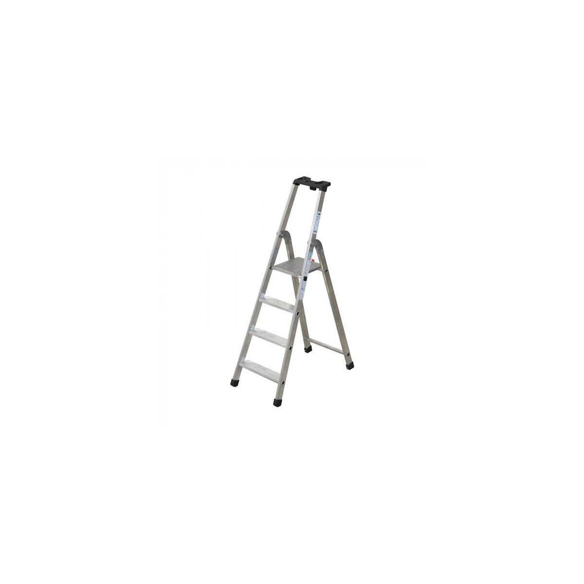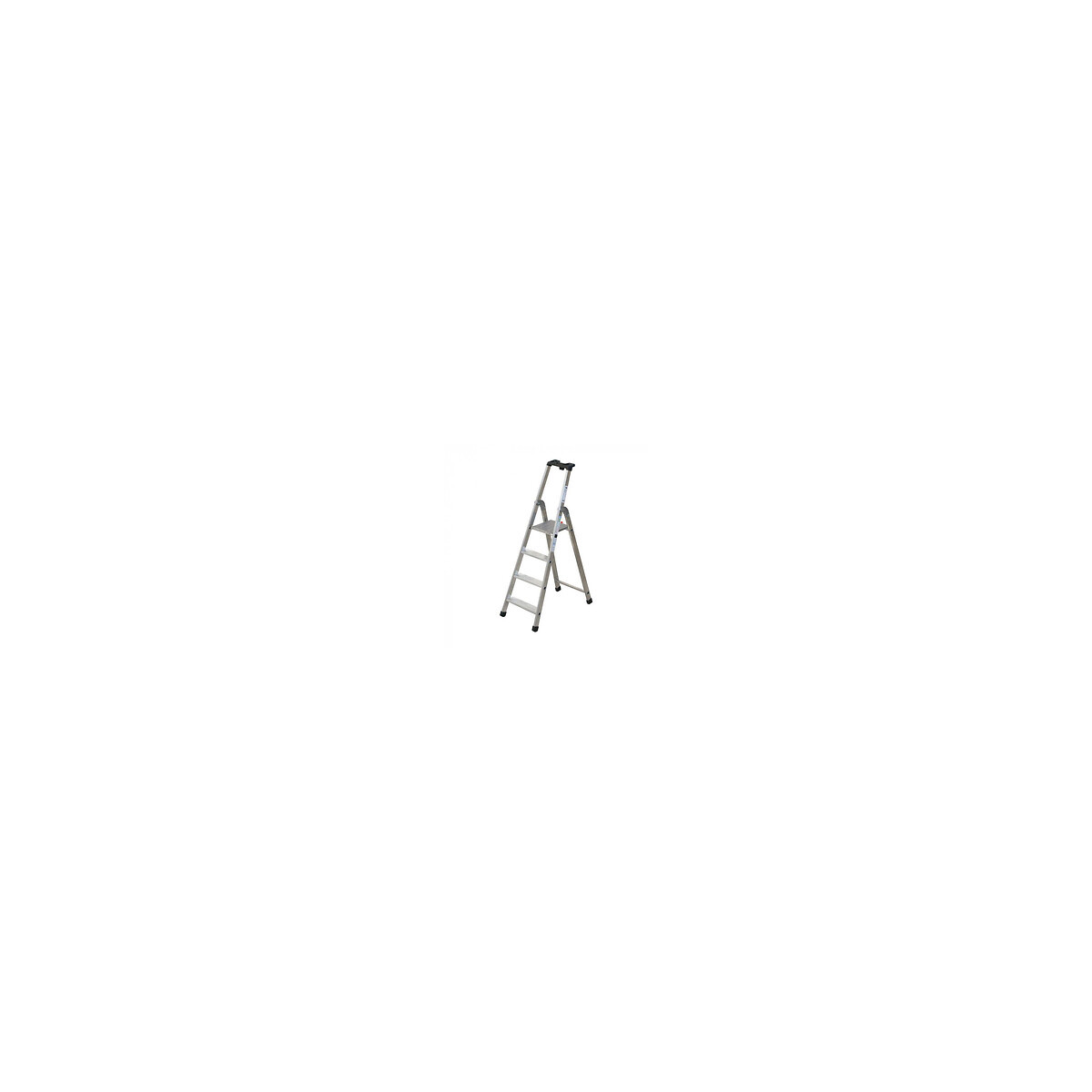L'escabeau professionnel est léger et maniable, donc idéal pour les travaux en hauteur. Patins haut en caoutchouc. - Porte-outils nylon riveté résistant aux chocs et poids léger. - Articulation en fonderie d'aluminium Usage intensif. - Sangle de sécurité à partir de 5 marches. Marches : 1x4 Hauteur dépliée : 1,48 m Hauteur de plancher : 0,88 m Hauteur de travail avec opérateur : ≃ 2,68 m 2 inclinaisons différentes, le plan de montée incliné à 68° permet une utilisation plus douce. La béquille inclinée à 75° permet au marchepied, de se positionner près du mur et donne une plus grande rigidité au produit.