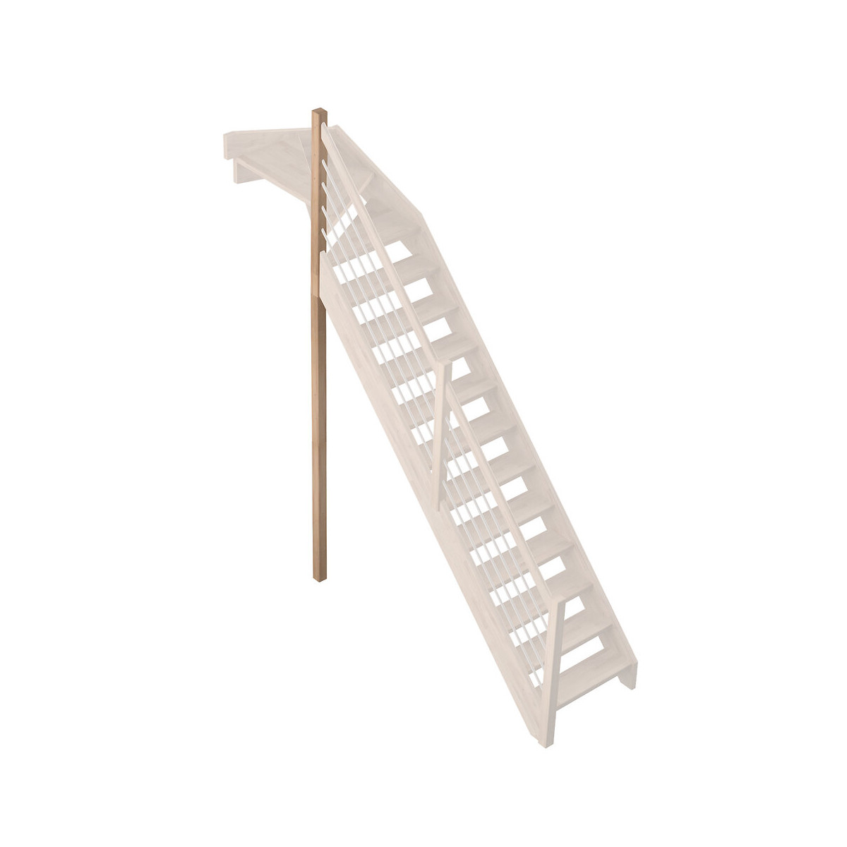 poteau support pour quart tournant haut gauche escalier PROVENCE En chêne lamellé B/C valable uniquement avec la rampe bois-aluminium G Hauteur escalier avec quart tournant gauche = 275cm Largeur escalier = 82cm Usage intérieur