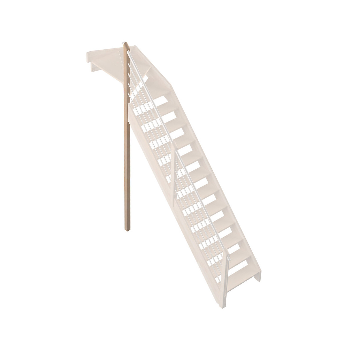 poteau support pour escalier quart tournant haut gauche Savoie En hêtre lamellé A/B, valable pour la rampe bois-aluminium type M Hauteur escalier avec quart tournant haut : 275cm Largeur escalier : 82cm Usage intérieur