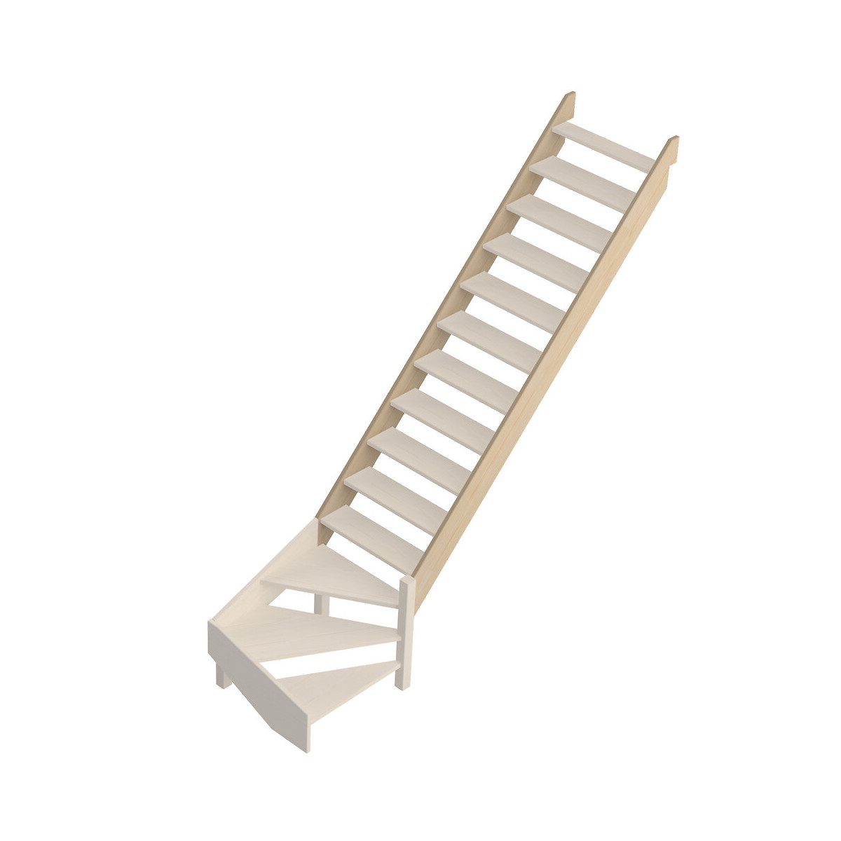2 limons pour escalier avec quart tournant bas Jura En sapin à noeuds Hauteur esc : 275cm Largeur escalier : 82cm Usage intérieur