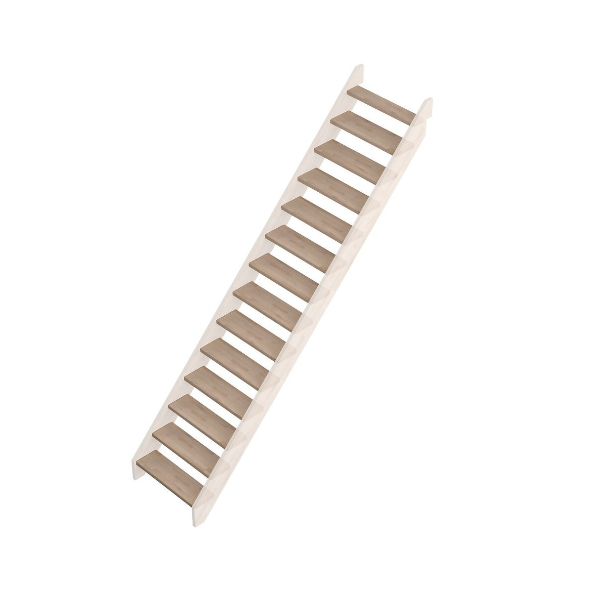 14 marches pour escalier PROVENCE13 + 1 demi marche palière En chêne lamellé, épaisseur 38mm, profondeur 22, giron 19cmHauteur escalier : 275cm Largeur escalier : 82cmFourni dans 2 colis Usage intérieur