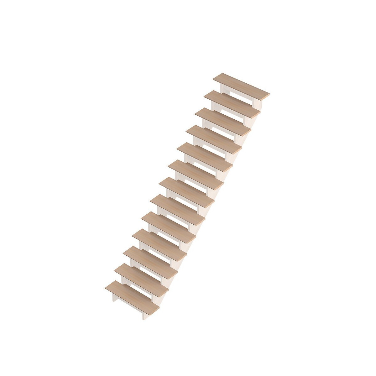 13 marches en hêtre lamellé (2 colis) pour escalier BRETAGNE Hauteur marche : 16mm Largeur marche : 85cm Profondeur marche : 22cm Giron : 19, 5cm Recoupable max. 2x5cm Trémie minimum : 90cm