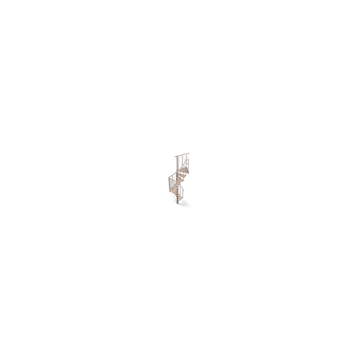Escalier spirale en hêtre lamellé vernis ALPHA 120cmPour trémie carrée12 marches en hêtre vernis naturel, épaisseur 35mm; entretoise réglable de 22 à 23, 8cmHauteur arrivée niveau palier : minimum 286cm, maximum 309cmEntretoises en métal thermolaqué gris argent Rampe métal avec 5Lisses inox et main courante en hêtre massif diamètre 40mmPalier en hêtre vernis naturel + garde-corps sur palier inclus. Usage intérieur