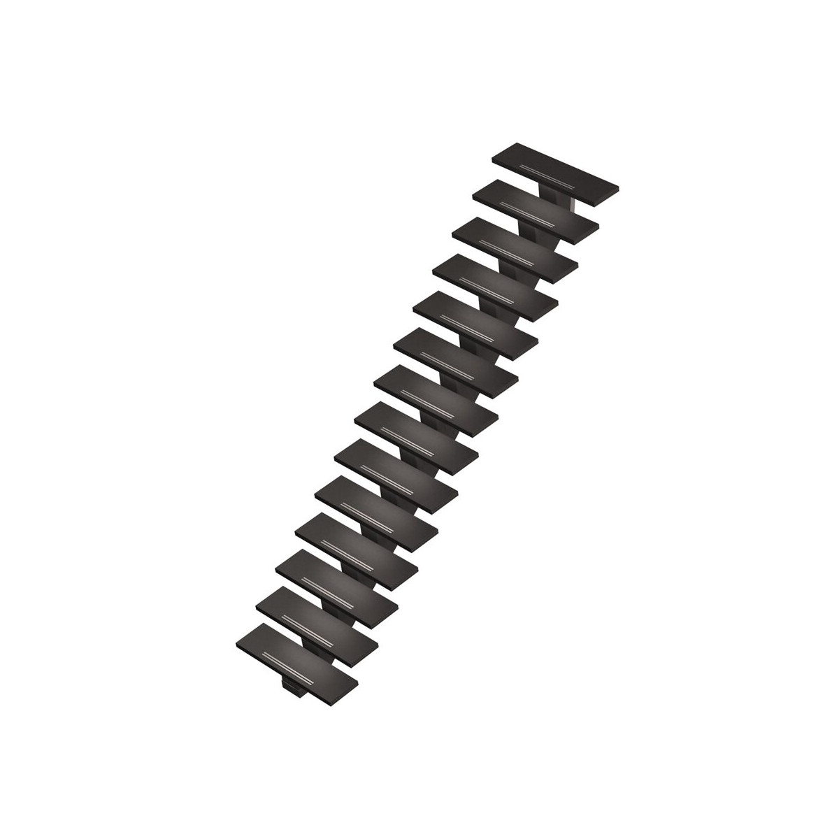 Escalier moderne avec limon central Version droite Finition huile Rubio Monocoat 14 marches en panneaux de fibre de bois naturel Valchromat, épaisseur 38mm, giron 20cm Modèle de marche avec strips aluminium Largeur 85cm Hauteur sol/sol : de 280, 2 à 285, 2cm Trémie min. 220/90cm Recul : 279cm Assemblage des limons en 2 pièces. Testé en laboratoire du C. S. T. C n° agrégation DE 651XH 695