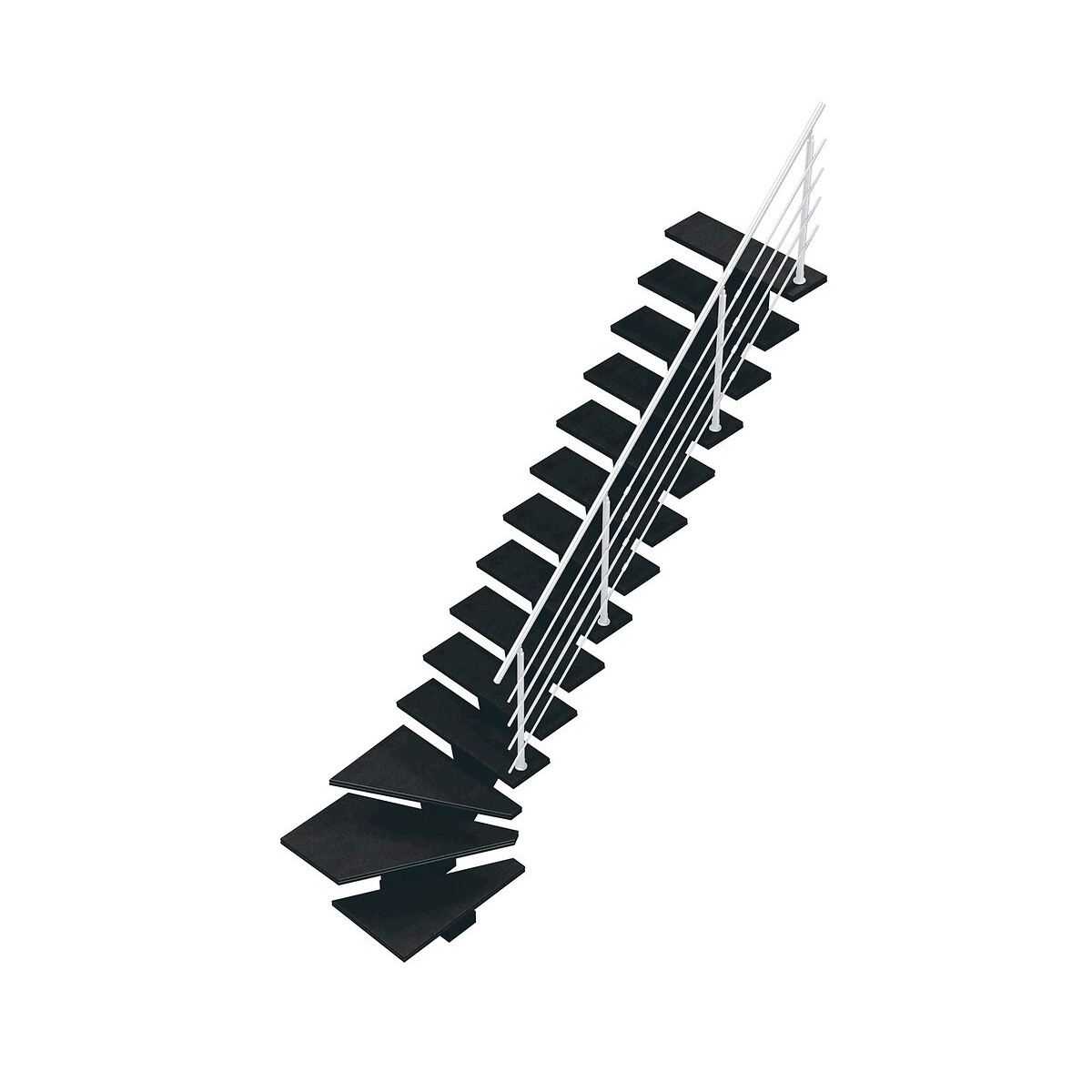 Escalier moderne avec limon central Version 1/4 tournant bas droit Finition huile Rubio Monocoat 14 marches lisses en panneaux de fibre de bois naturel Valchromat, épaisseur 38mm, giron 20cm Largeur : 85cmHauteur sol/sol : de 280, 2 à 285, 2cmTrémie min. 220/90cmRecul : 302cmAssemblage des limons en 2 pièces. Testé en laboratoire du C. S. T. C n° agrégation DE 651XH 695Livré en box palette Usage intérieur