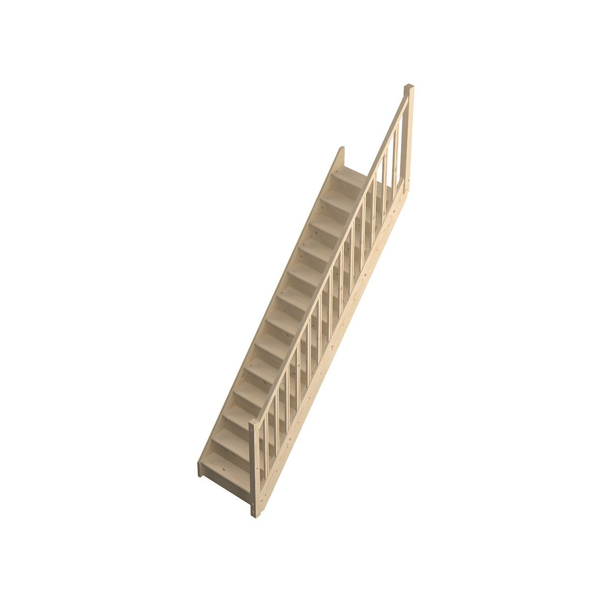 L'escalier TRADI ECO SAPIN droit est un escalier classique livré en kit. Celui-ci est composé de 13 marches, 13 contre marches et d'une rampe à balustres moulurés. A peindre ou à huiler. Hauteur sol/sol : 280cm - largeur 80cm sans la rampe et 82cm avec la rampe - Profondeur de marche : 19cm - Giron : 16cm.