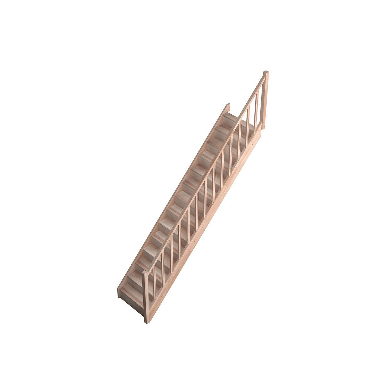 L'escalier ECO FRANCE hêtre droit est un escalier classique livré en kit. Celui-ci est composé de 14 marches dont une demi marche palière, 14 contre marches et d'une rampe à balustres moulurés. A peindre ou à huiler. Hauteur sol/sol : 275cm - largeur 83cm sans la rampe et 85cm avec la rampe - Hauteur de marche : 19, 5cm - Profondeur de marche : 19, 5cm - Giron : 19, 5cm.