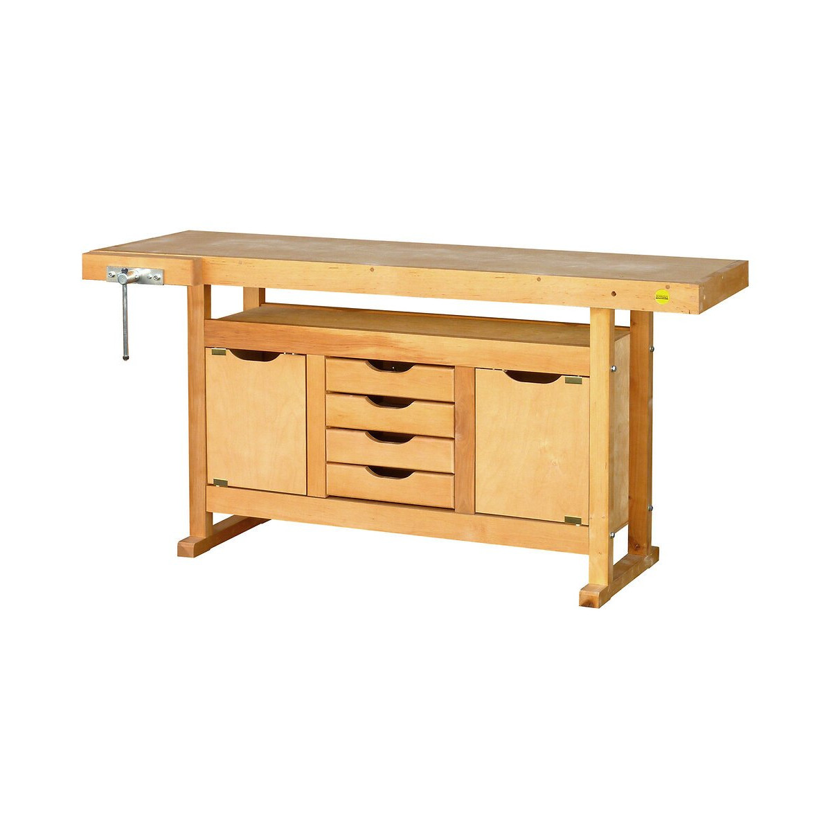 L'établi de menuisier en bois 1,50 mètres avec caisson OUTIFRANCE est équipé de 4 tiroirs et de 2 portes. Idéal pour les bricoleurs exigeants. Caractéristiques du bâti : Plateau bois multiplis 25 mm avec ceinture bois massif 70 mm. Piètement de section 50 x 40 mm avec semelles Rangements : caisson avec 4 tiroirs 340 x 310 x h 85 mm et 2 portes 290 x h 360 mm Espace de rangement entre le plateau et le caisson Serrage : presse avant horizontale mâchoire bois, vis acier Ø 18 mm, Largeur 320 mm, ouverture max 170 mm