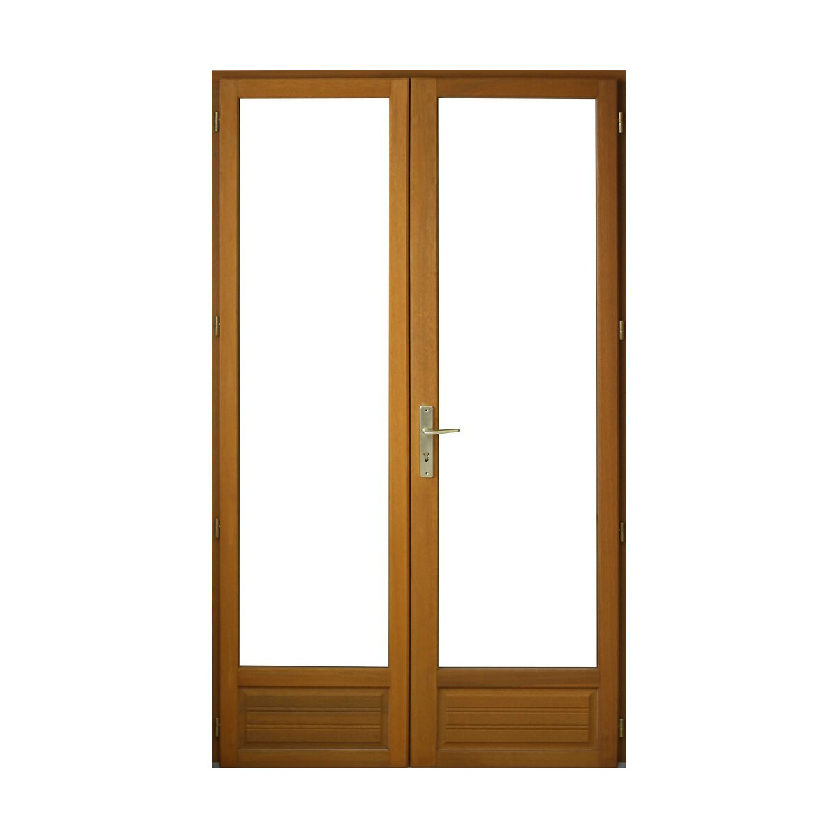 Epaisseur des dormants et des ouvrants : 46mm. Le dormant (section 46mmx59mm) est assemblé mécaniquement, par vis. Son profil est conçu de façon à recevoir des fausses tapées d'isolation. Pièce d'appui bois de 112mm de largeur sur les fenêtres. Seuil aluminium anodisé sur les portes-fenêtres. Joint d'étanchéité sur recouvrement. Les ouvrants sont à recouvrement de section 46mmx59mm sauf battant crémone de 46x67mm assemblés mécaniquement par 4 vis, équipés de vitrage isolant 4/16/4 faible émissivité + gaz argon posé en rainure auto-drainante avec un joint bi - dureté (corps en polypropylène avec une lèvre souple en élastomère thermoplastique). Ferrage : fiches bichromatées réglables hauteur 60mm. Batteuse pour châssis 1 vantail et abattant, 1 ou 2 compas sur les châssis abattant. Crémone à condamnation intérieure sur les fenêtres, 2, 3 ou 4 points de fermeture suivant les hauteurs. Les portes-fenêtres ont un soubassement panneau massif de 40mm d'épaisseur à double plates-bandes posé en rainure avec le même joint intérieur et extérieur que le vitrage. Battant crémone section 46mmx83mm. Crémone à barillet 5 points sur les portes-fenêtres (barillet non compris).