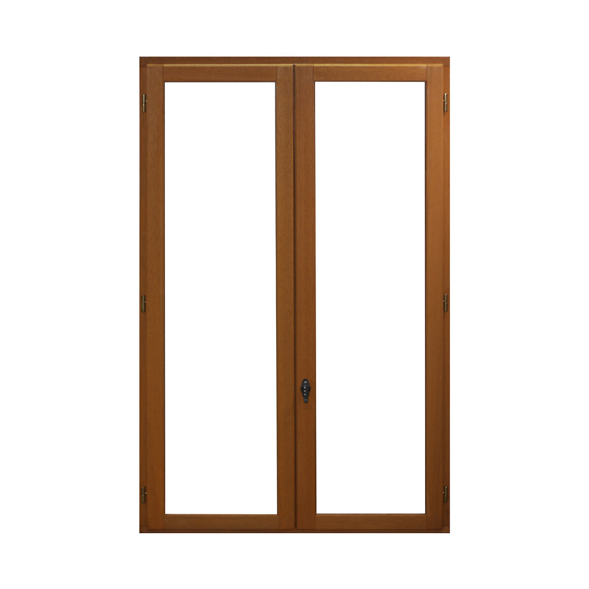Epaisseur des dormants et des ouvrants : 46mm. Le dormant (section 46mmx59mm) est assemblé mécaniquement, par vis. Son profil est conçu de façon à recevoir des fausses tapées d'isolation. Pièce d'appui bois de 112mm de largeur sur les fenêtres. Seuil aluminium anodisé sur les portes-fenêtres. Joint d'étanchéité sur recouvrement. Les ouvrants sont à recouvrement de section 46mmx59mm sauf battant crémone de 46x67mm assemblés mécaniquement par 4 vis, équipés de vitrage isolant 4/16/4 faible émissivité + gaz argon posé en rainure auto-drainante avec un joint bi - dureté (corps en polypropylène avec une lèvre souple en élastomère thermoplastique). Ferrage : fiches bichromatées réglables hauteur 60mm. Batteuse pour châssis 1 vantail et abattant, 1 ou 2 compas sur les châssis abattant. Crémone à condamnation intérieure sur les fenêtres, 2, 3 ou 4 points de fermeture suivant les hauteurs. Les portes-fenêtres ont un soubassement panneau massif de 40mm d'épaisseur à double plates-bandes posé en rainure avec le même joint intérieur et extérieur que le vitrage. Battant crémone section 46mmx83mm. Crémone à barillet 5 points sur les portes-fenêtres (barillet non compris).