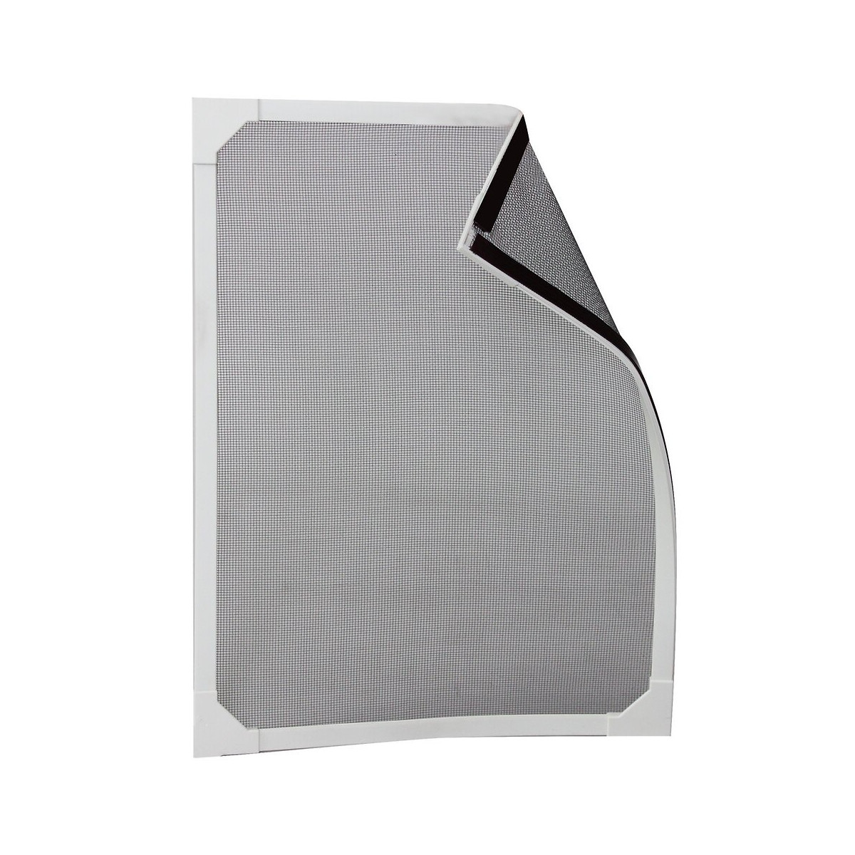 Moustiquaire cadre fixe PVC blanc pour fenêtre. Toile en fibre de verre, bandes aimantées adhésives, ajustable en hauteur et largeur à l'aide de ciseaux.